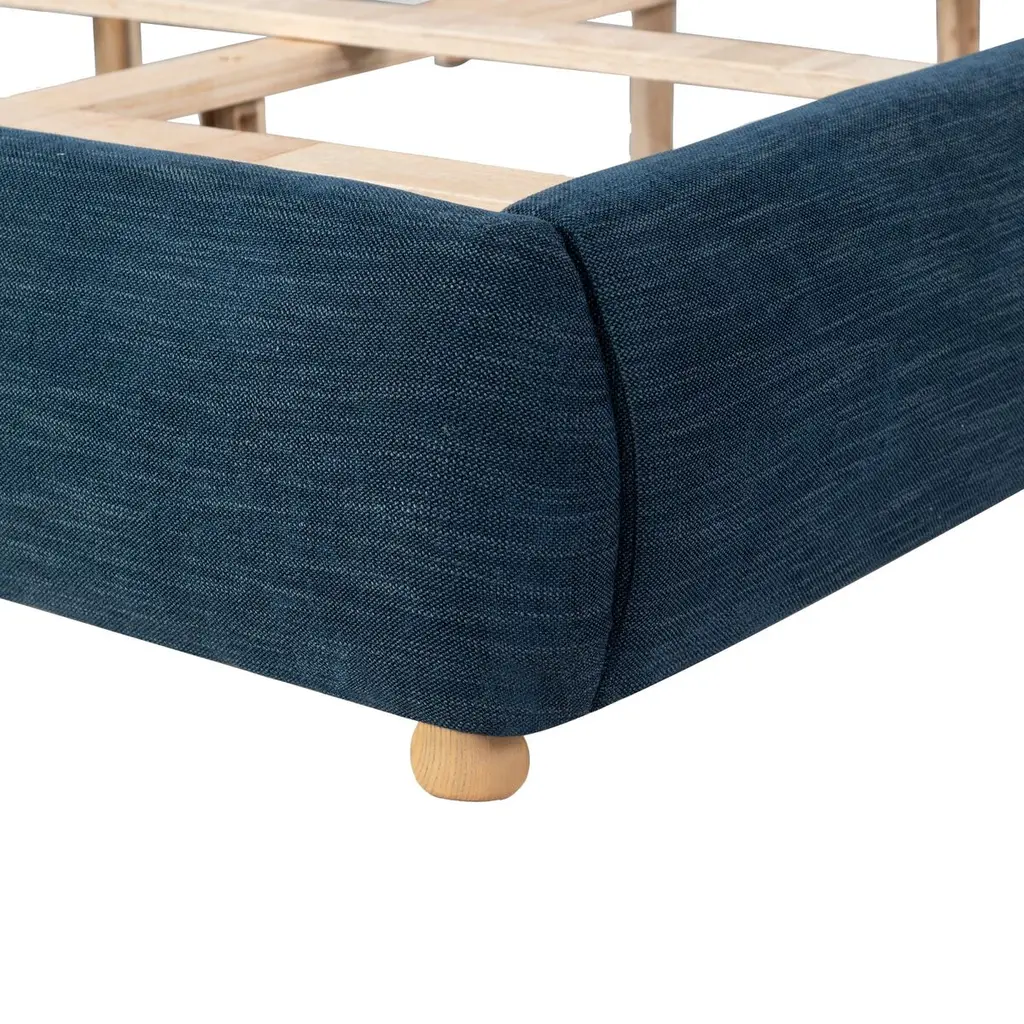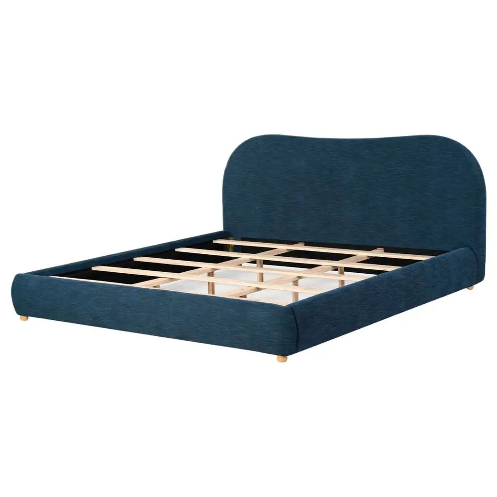 Embrace a cozy and sophisticated centerpiece for your bedroom with our Ezrena bed. Achieving the perfect balance between clean lines and plush curves, our bed vouches for a modern and inviting appeal. Its rails and headboard receive the perfect finishing touch with rounded cylindrical posts. Fully upholstered in the rich textures of boucle, our bed adds a touch of softness to your modern or contemporary bedroom. It includes a tall and plush headboard to invite reading, lounging, and a comfy sleep at night.
