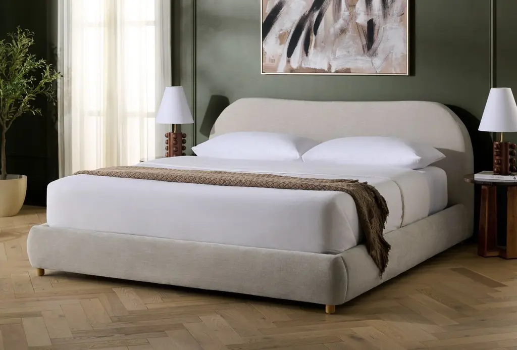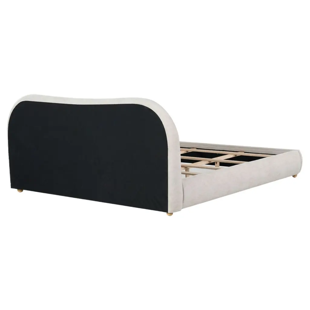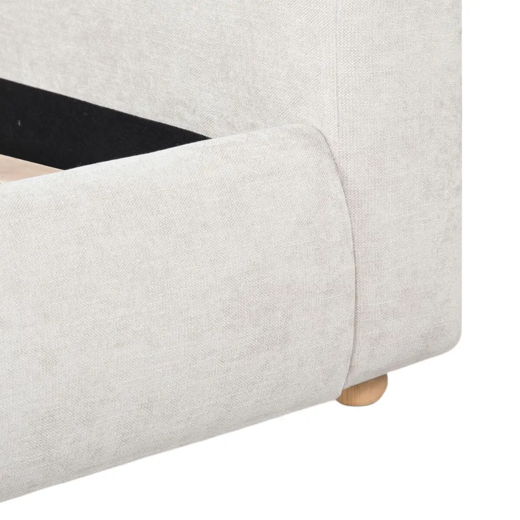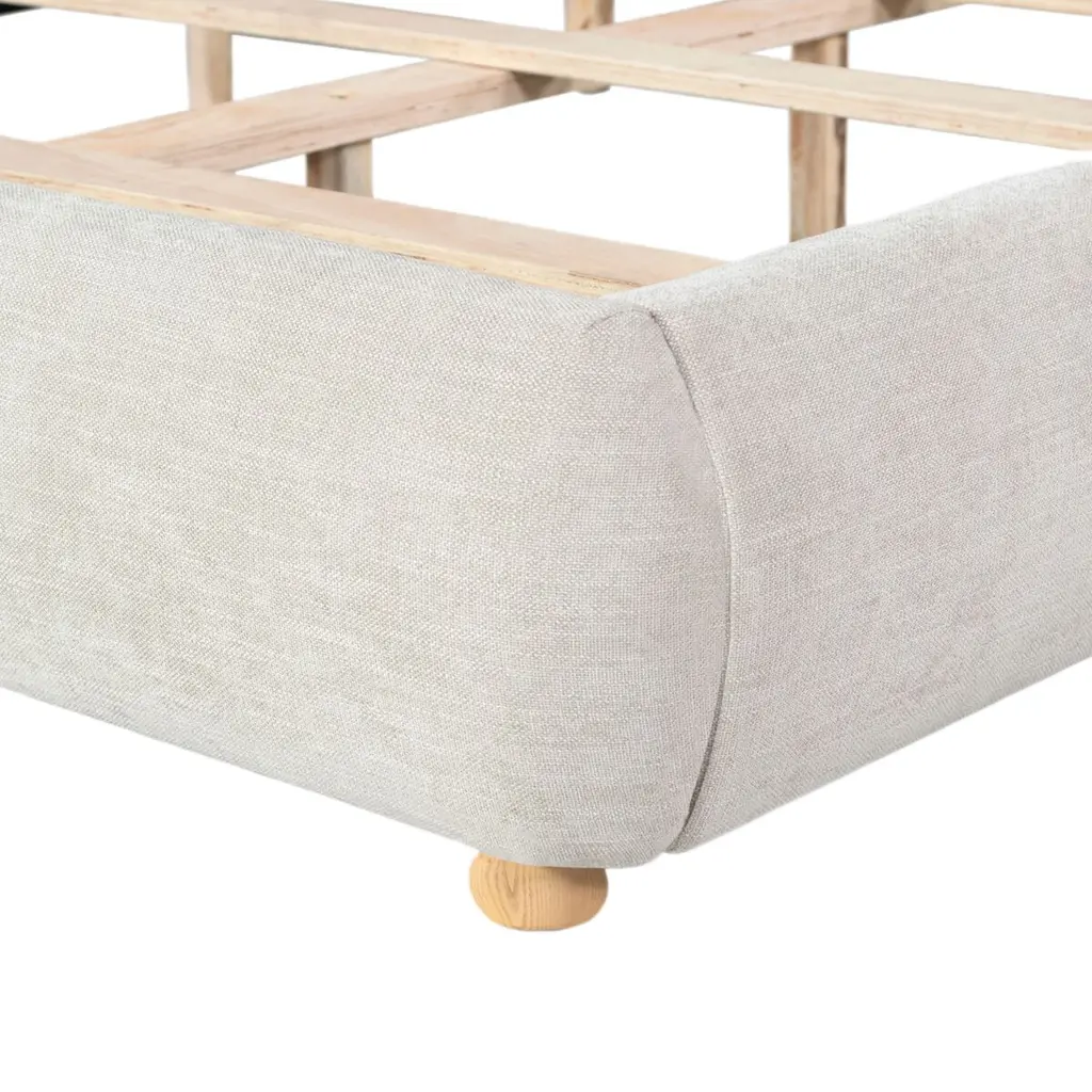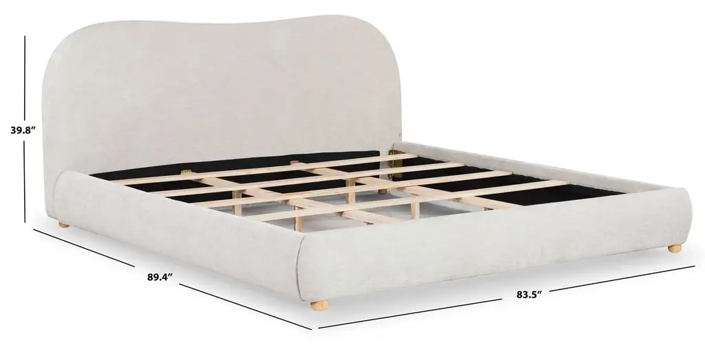 Embrace a cozy and sophisticated centerpiece for your bedroom with our Ezrena bed. Achieving the perfect balance between clean lines and plush curves, our bed vouches for a modern and inviting appeal. Its rails and headboard receive the perfect finishing touch with rounded cylindrical posts. Fully upholstered in the rich textures of boucle, our bed adds a touch of softness to your modern or contemporary bedroom. It includes a tall and plush headboard to invite reading, lounging, and a comfy sleep at night.