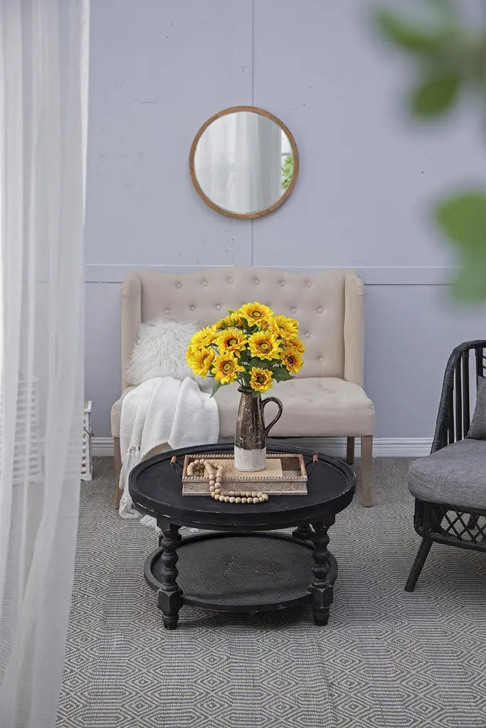 Crafted in the image of vibrant sunflowers, this artificial decorative bush offers the same gorgeous yellow color, lifelike texture, and delicate leaves without the need for upkeep and watering. Measuring 18.9H x 11W x 10.2D, this collection could easily be placed in a large vase for a centerpiece display, or as part of a natural ensemble in your living room, dining room, entryway, kitchen, or bedroom. Perfect for those who love crafts, the fabric, plastic, and wire construction allow this bush to easily be used as part of a vibrant wreath or bouquet, providing even more versatility