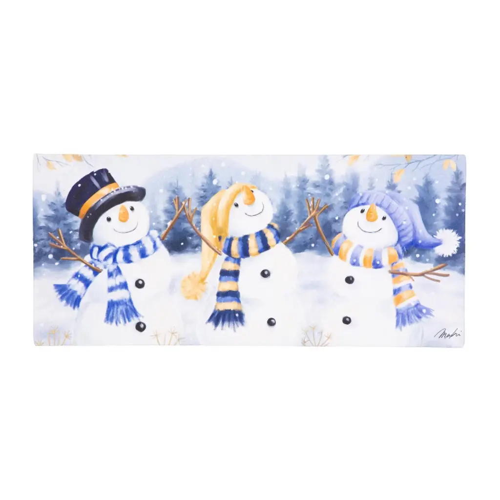 Felt Snowmen Each. This set of two felt snowmen, complete with buttons, scarves, and top hats, will please any snow bunny. Use these fabric snow creations as decoration for your holiday village or table centerpiece. They stand 12" and 10" high and match any decor. Wipe clean with a lint-free, dry cloth. Matching pieces sold separately. Fully assembled. Manufacturer: Kalalou.