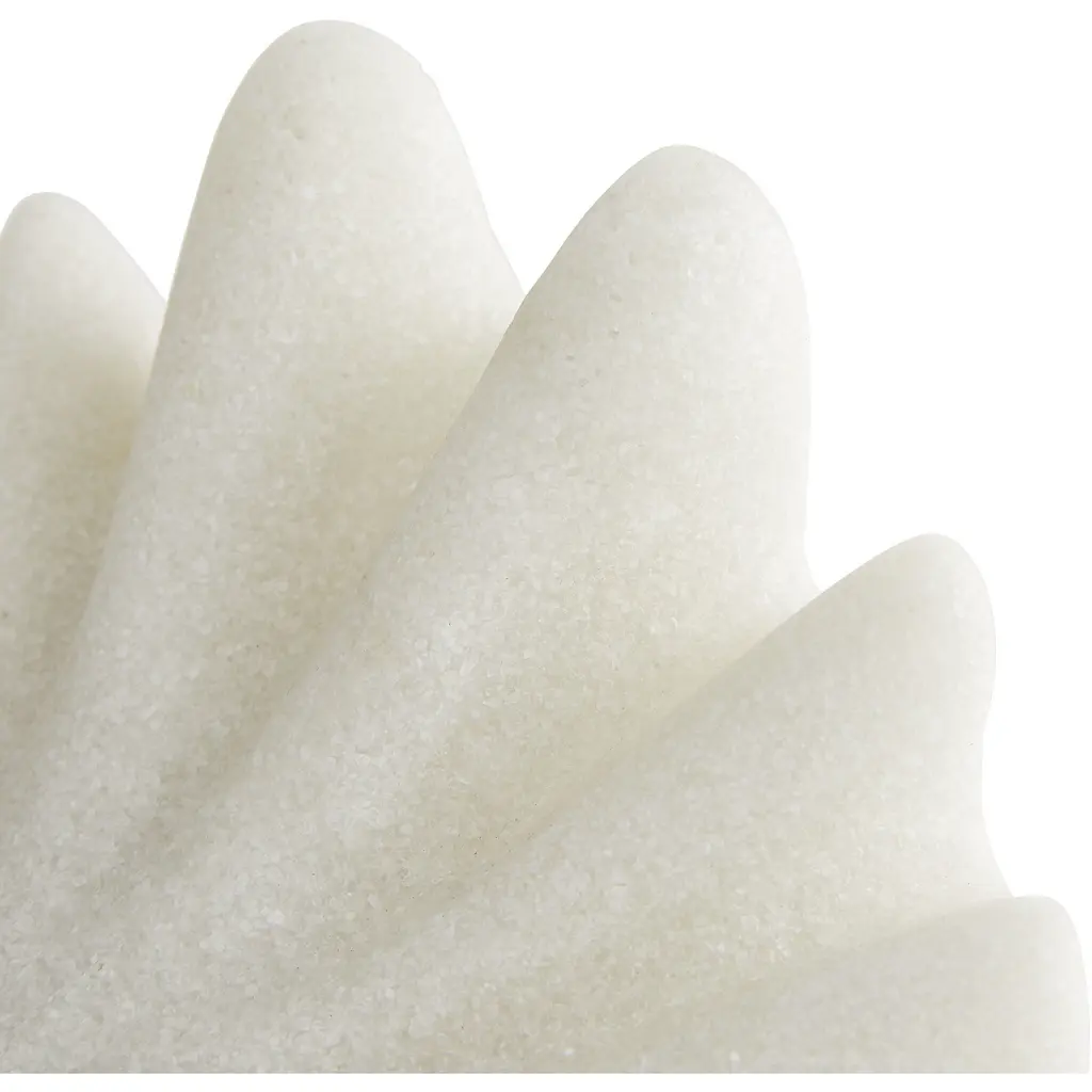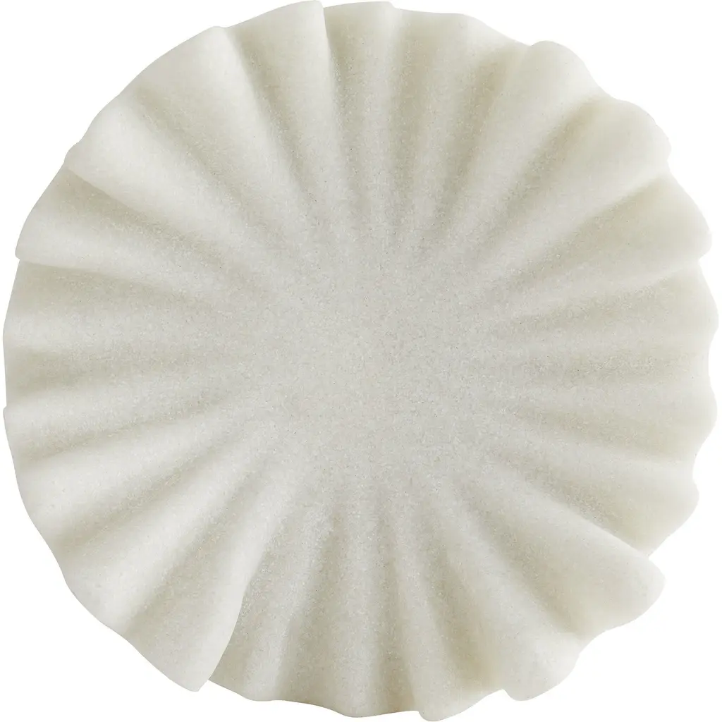 There is some debate as to whether this centerpiece was inspired by the ruffles that denote an Elizabethan collar or the tentacles that waver from a sea anemone but we'll let you decide. It is crafted from white ricestone and features a rippled faade that extends from a smooth center. A great way to spotlight a few of your favorite curios on a tabletop. Finish may vary.