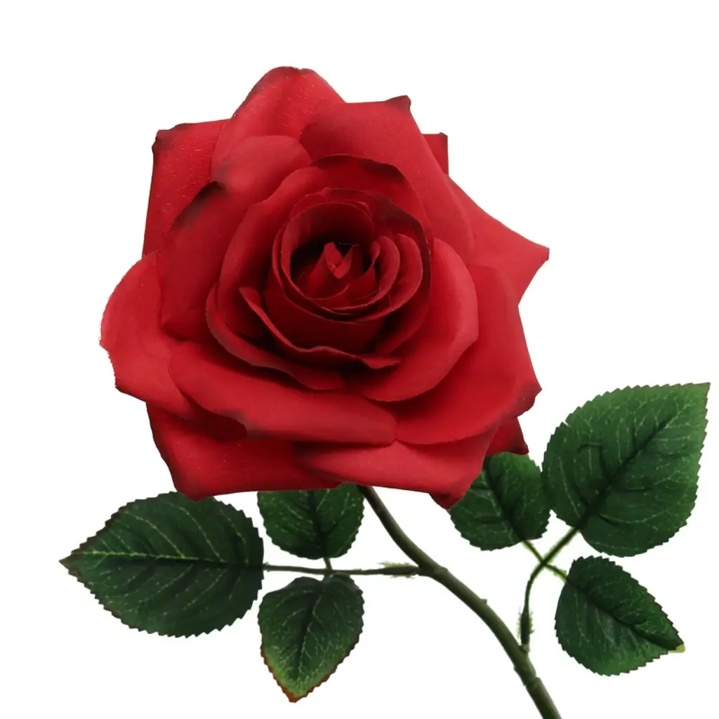 Add a touch of elegance to your arrangements with the Floral Home 20" Stem Long Red Open Rose, featuring a stunning 5" diameter rose head. Crafted from lifelike silk, this beautiful rose is accompanied by six leaves of silk greenery foliage, providing a natural look that enhances any display. Perfect for wedding décor or as a striking centerpiece, this set of 12 roses offers versatile styling options to brighten your space with timeless beauty.
