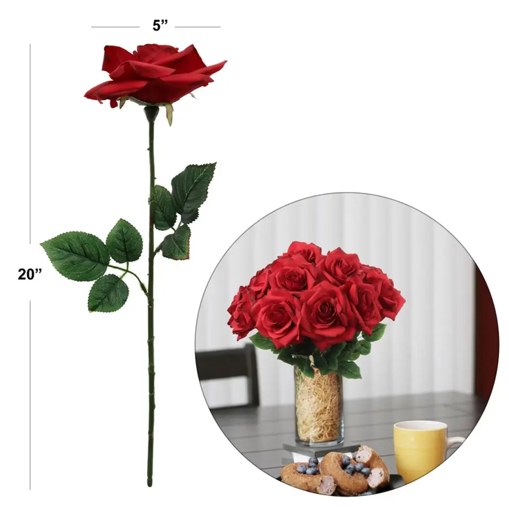 Floral Home 20" Stem Long Red Open Rose - 12-piece
