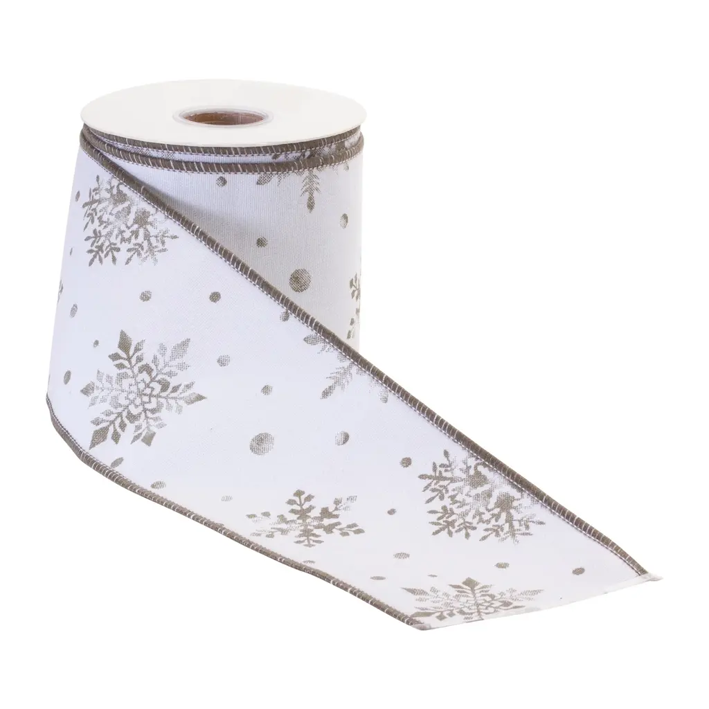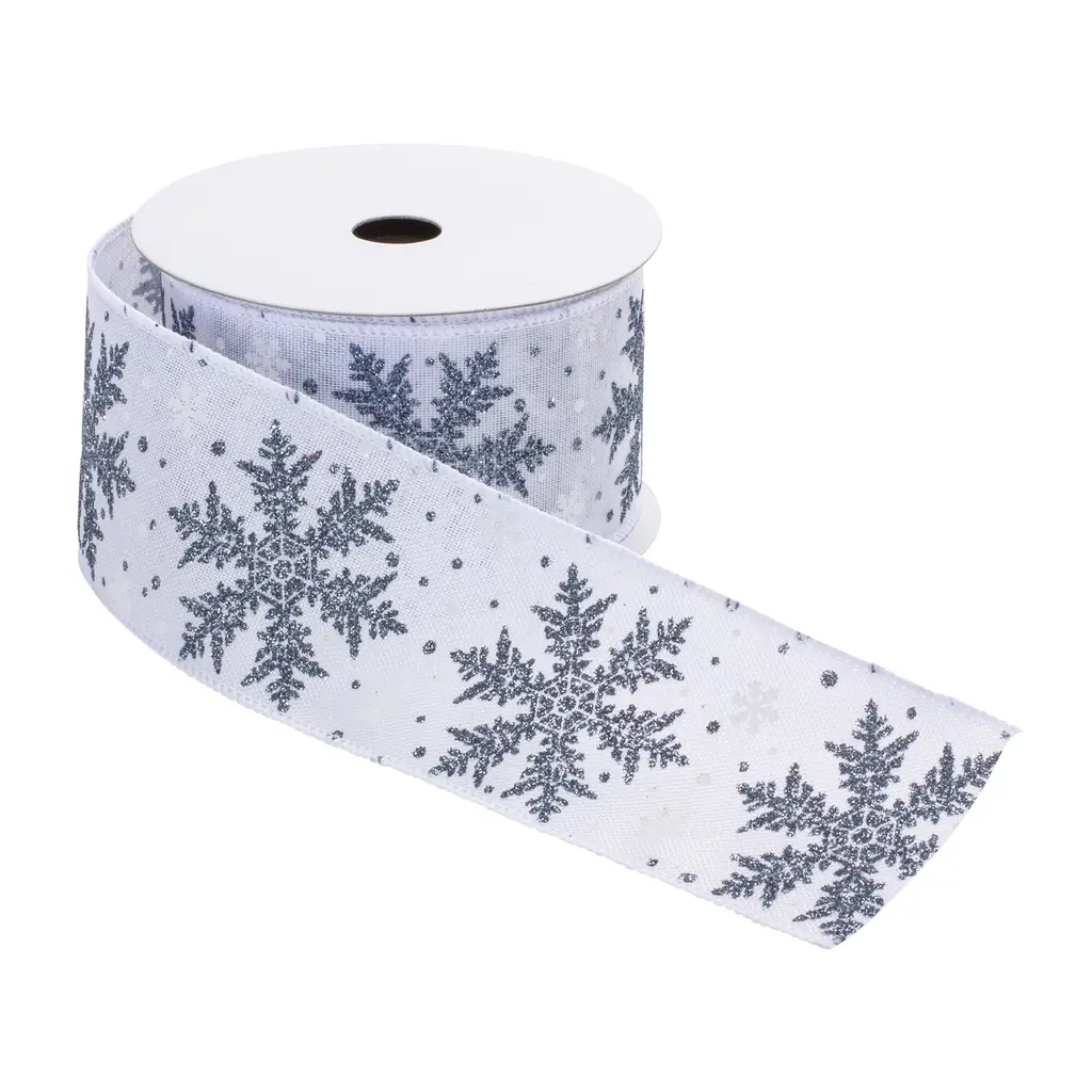 Welcome to your holiday oasis. Our Forest Snowflake Ribbon is your perfect companion in creating a festive scene that resembles a true holiday wonderland. With its intricately designed texture and sparkling snowflakes that hint at winter magic and festive cheer, this unique ribbon is a must-have for true Christmas enthusiasts! Whether you’re putting the finishing touches on your centerpiece, wrapping your wreaths, accessorizing gift boxes, or seeking to add a quick splash of holiday magic to that space that needs just a bit more love, a little ribbon can go a long way. With a generous 10 yards in length, the decorating possibilities are truly endless. Let your creativity run wild and bring your Christmas dreams to life this holiday season with a roll of the distinguished Forest Snowflake Ribbon.