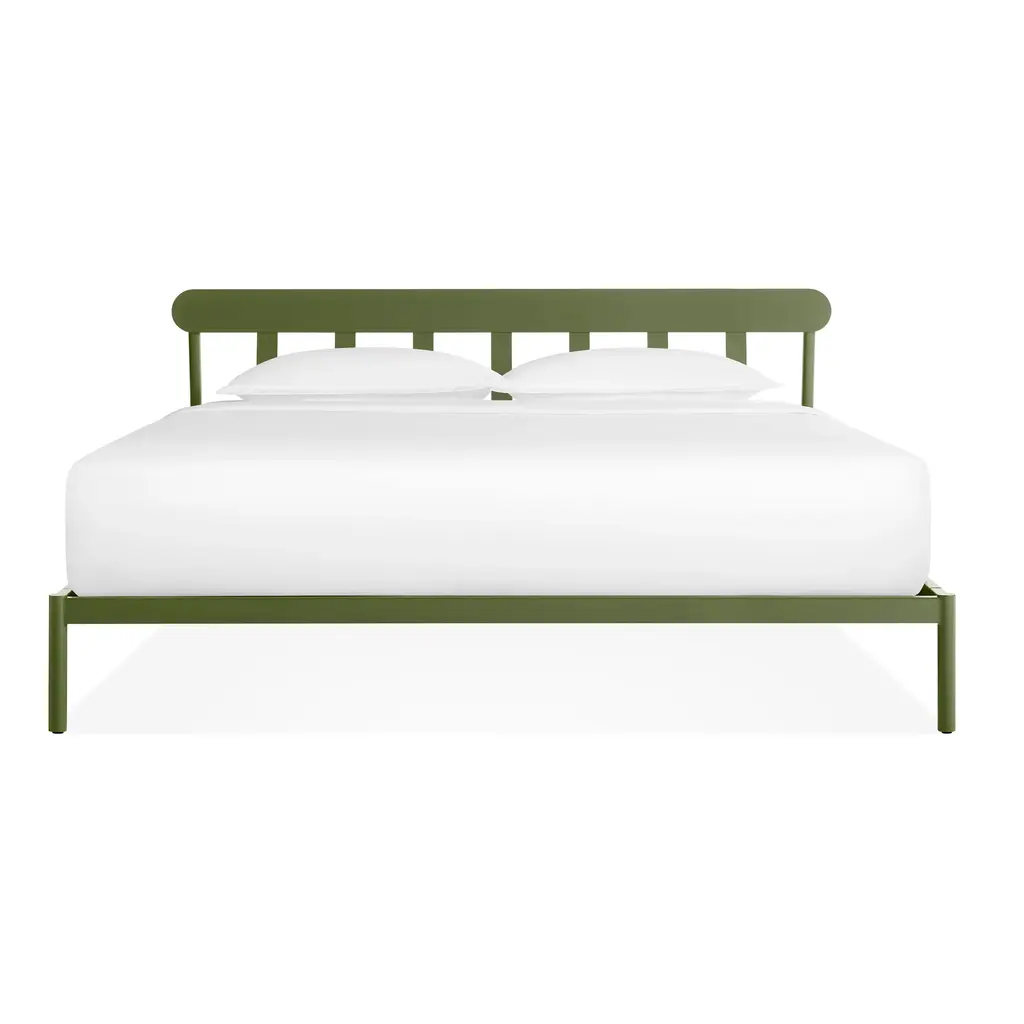 The Goodie Bed from Blu Dot makes hitting the hay a joyful proposition. Crafted with a slim, powder-coated steel frame, this bed brings a light and airy presence to the bedroom, creating a sense of openness. Its gently angled headboard is designed to perfectly prop your pillow for late-night reading or lazy weekend mornings. A perfect blend of modern simplicity and clever comfort, it’s an understated centerpiece for a truly restful retreat. Highlights