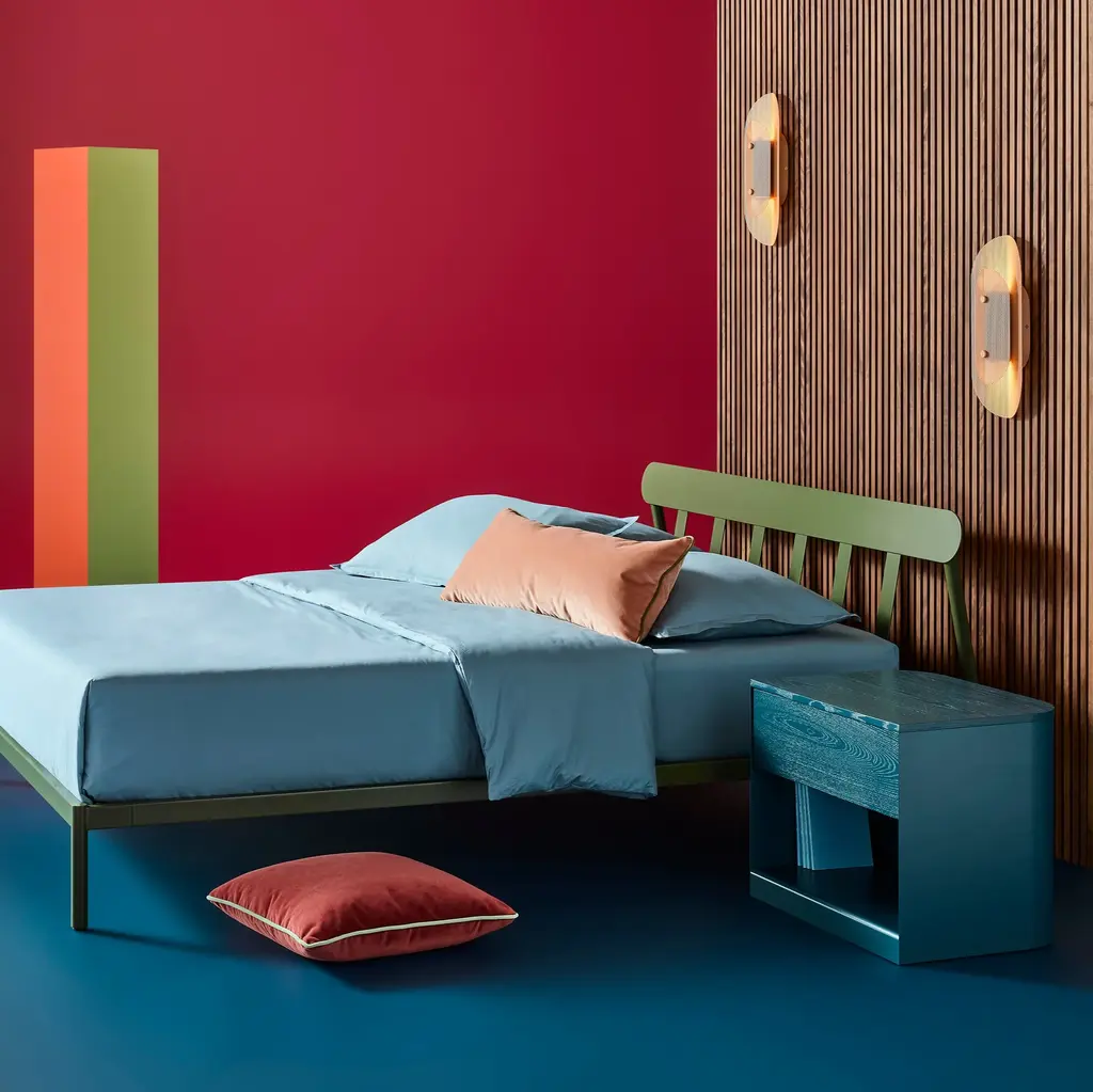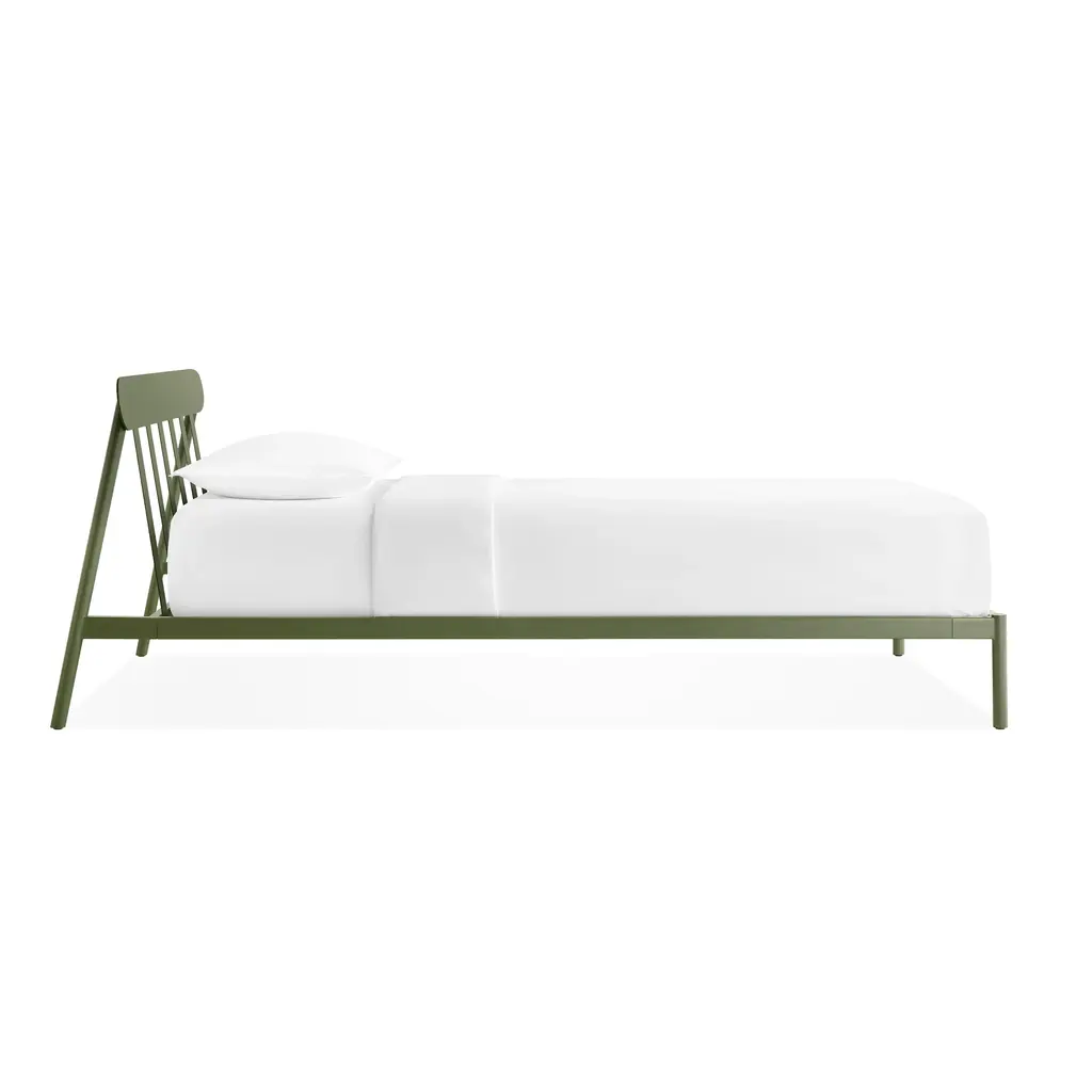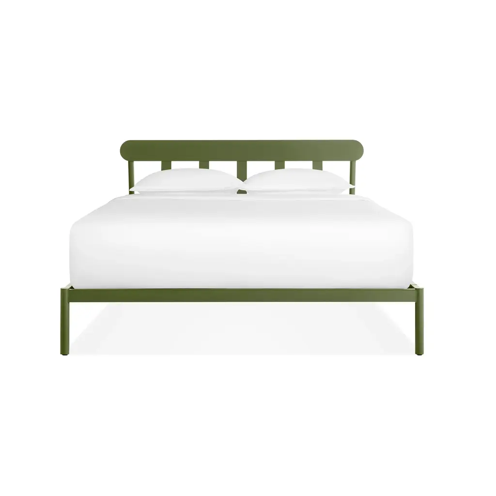 The Goodie Bed from Blu Dot makes hitting the hay a joyful proposition. Crafted with a slim, powder-coated steel frame, this bed brings a light and airy presence to the bedroom, creating a sense of openness. Its gently angled headboard is designed to perfectly prop your pillow for late-night reading or lazy weekend mornings. A perfect blend of modern simplicity and clever comfort, it’s an understated centerpiece for a truly restful retreat. Highlights