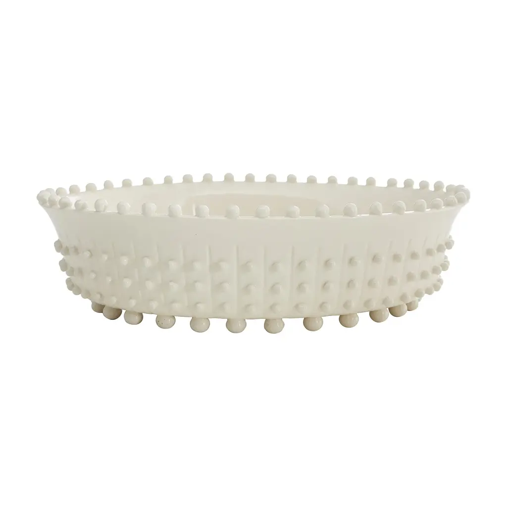 Glazed in eggshell, our handmade terracotta bowl may recall a sea anemone or coral. The smooth interior offers a contrast to its layered, textural form. Finish will vary.