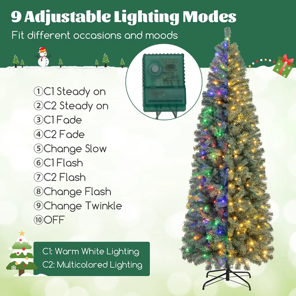 Enhance the Holiday Celebrations with Captivating Beauty! Adorned with 556/724 dense branch tips in eye-catching blue tint, this 6.5/7.5 ft artificial Christmas tree promises to be a standout centerpiece in your festive decorations. Moreover, it could illuminate your space with the brilliance of 200/250 color-changeable LED lights (emit multicolored or warm-white lighting), featuring 9 lighting modes to fit different occasions and moods. Assembling this tree is also a breeze with its hinged structure and 3/3-section design, allowing for easy setup and quick disassembly.Features:The unique blue leaves create a serene and enchanting atmosphere Pre-strung with bright LED lights, create a mesmerizing light show The LED lights offer both vibrant multicolored hues and warm white glowsColor: Blue Material: PVC, Metal Tree Height: 6.5 ft/195 cm, 7.5 ft/225 cm Tree Width: 2.5 ft/75 cm, 2.6 ft/80 cm Diameter of the Metal Base:20''/50 cm, 21.5''/55 cm Number of Branch Tips: 556/724 Number of LED Lights: 200/250 Number of Sections: 3/3 Net Weight: 12.5 lbs/5.5 kg, 15.5 lbs/7 kg Package Includes: 1 x Pre-Lit Christmas Tree 1 x Pair of Gloves 1 x User's Manual