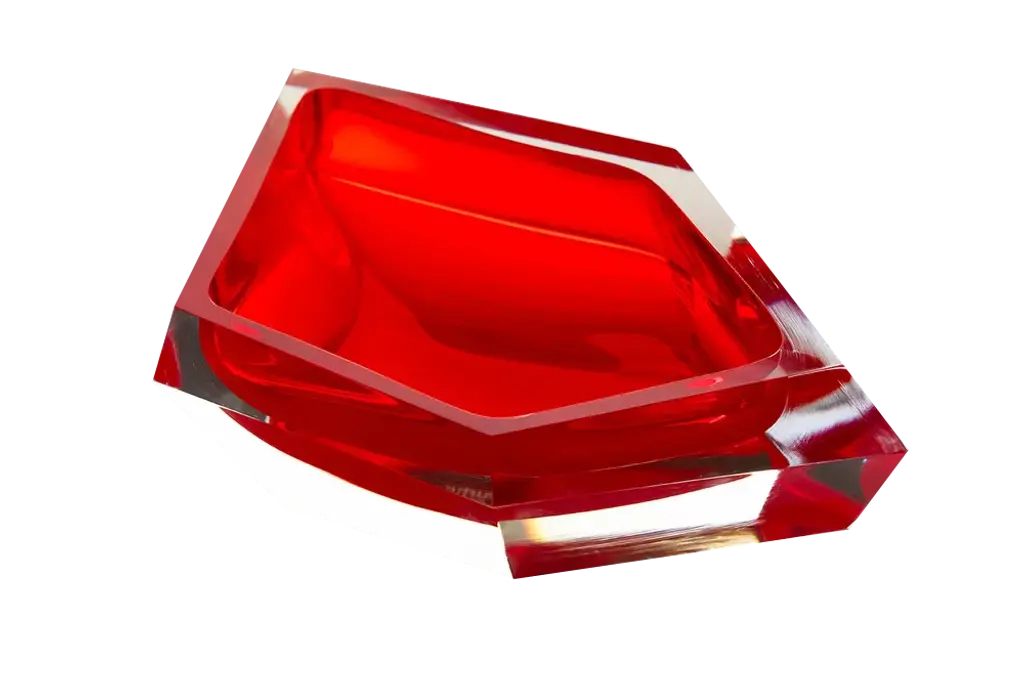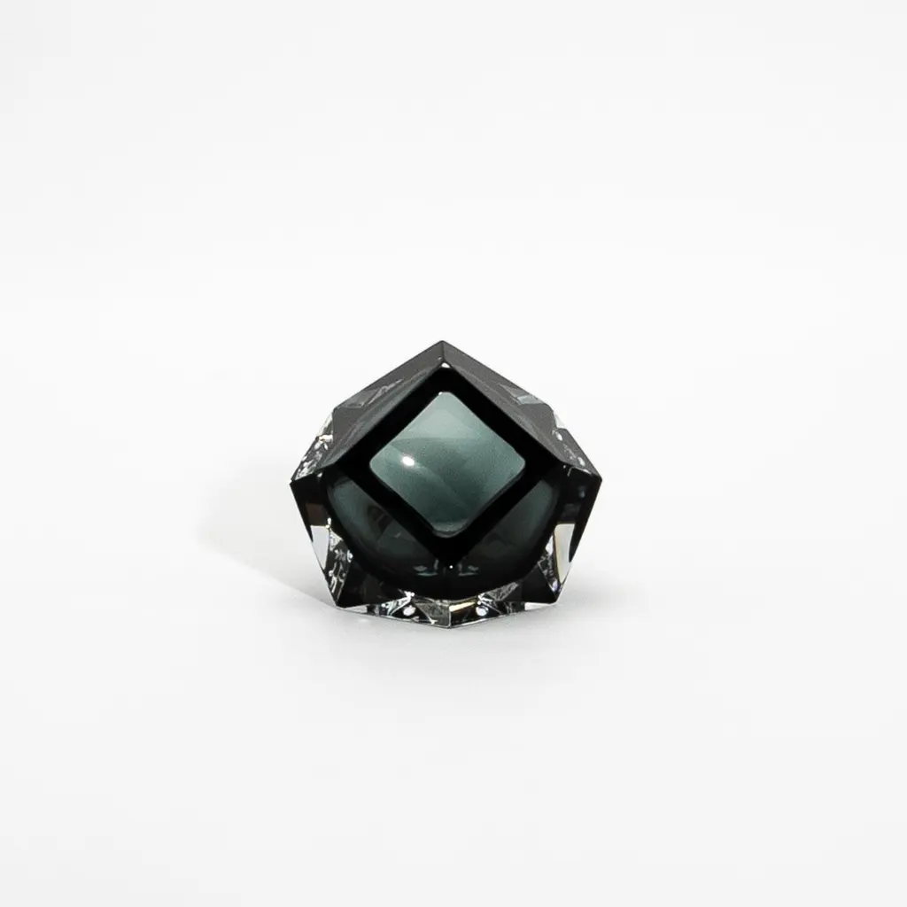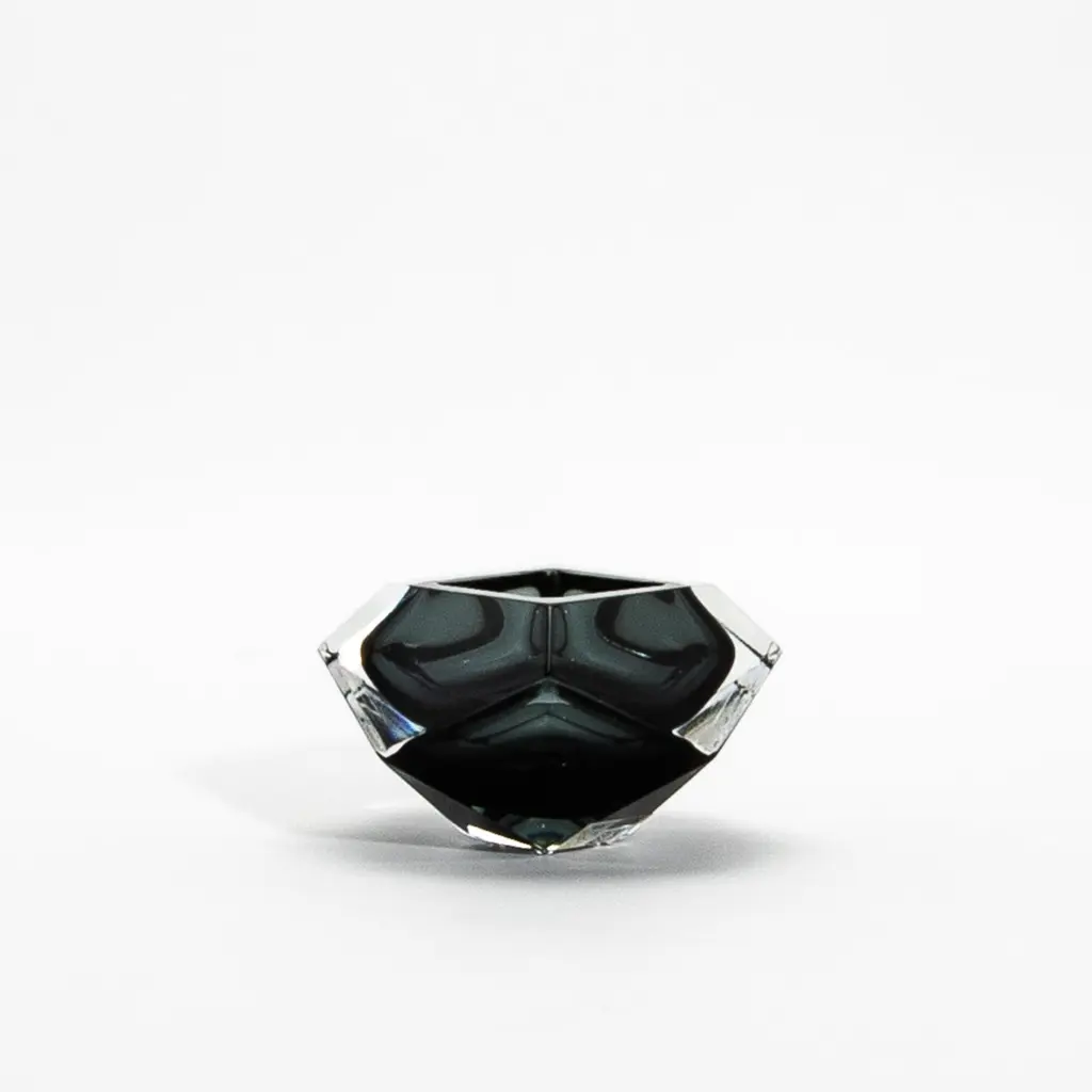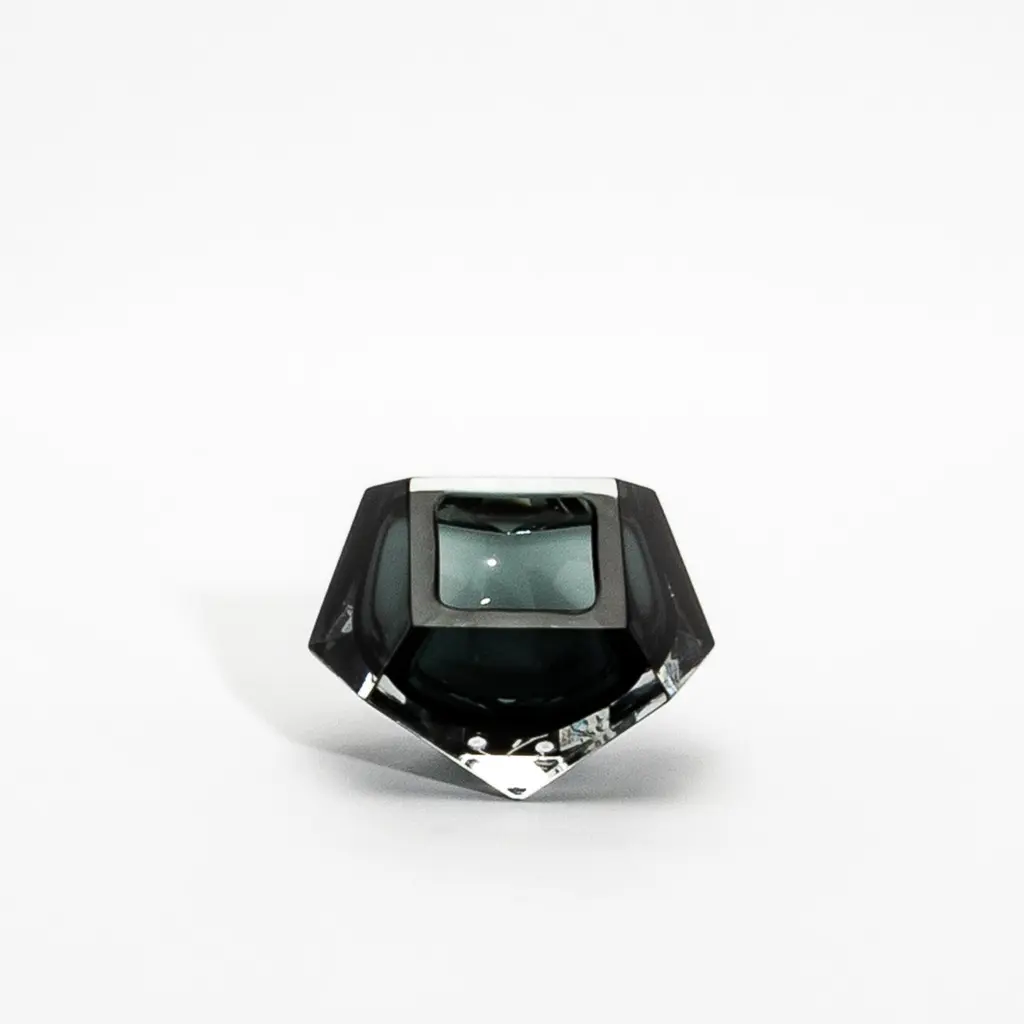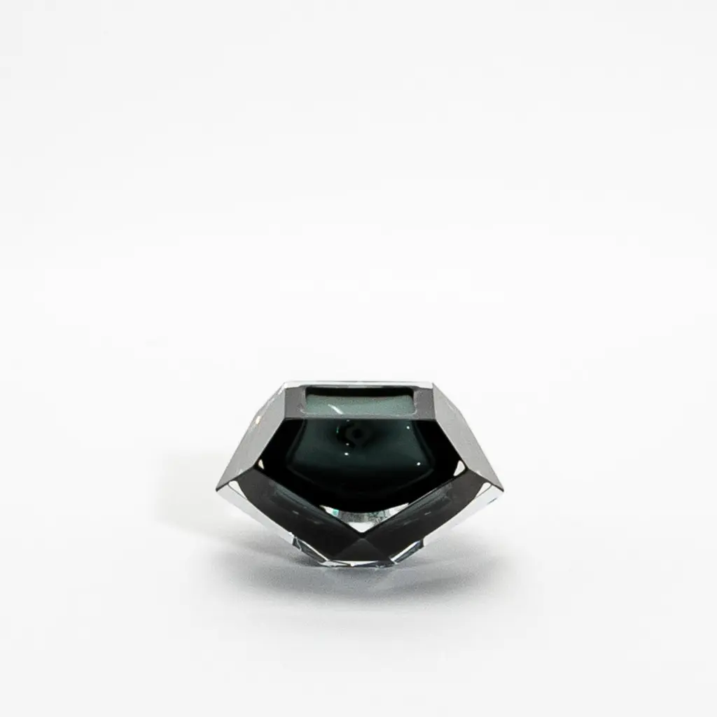This hand-blown Murano ashtray in grey showcases an intricate geometric design that is as captivating as it is refined. Its sleek silhouette, crafted from premium Venetian glass, creates a harmonious balance between functionality and artistry. The soft grey hue, paired with the reflective crystal edges, gives the piece a contemporary elegance, while its expertly faceted surfaces enhance its luxurious appeal. Perfect as a centerpiece or an understated accent, this handcrafted ashtray embodies the heritage of Murano's glassblowing mastery, delivering an exquisite touch of sophistication to any interior.