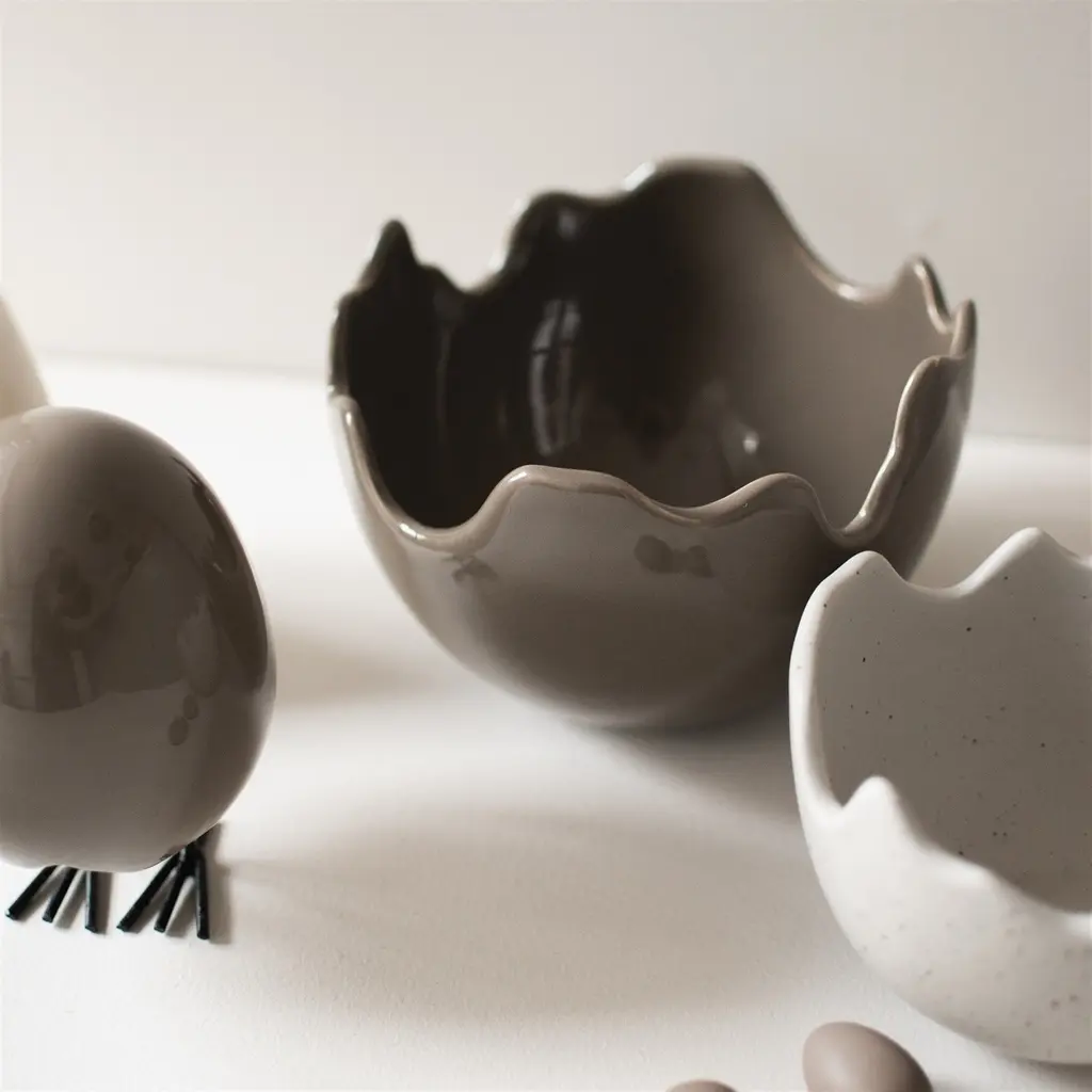 The "HAPPY EASTER" bowl, shaped like a cracked egg, is a charming addition to your holiday decor, perfect for holding candy or small plants. Its playful design captures the spirit of Easter, making it a delightful centerpiece or decorative accent. The cracked egg shape adds a whimsical touch, while the cheerful "HAPPY EASTER" inscription brings a festive feel to your home. Whether used for holding sweet treats or as a unique pot for plants, this versatile bowl is sure to bring joy to your celebrations. Its sturdy construction ensures it can be enjoyed for many Easters to come.