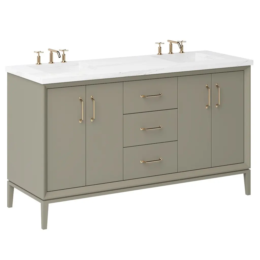 The Hawthorne Double Bathroom Vanity is a timeless piece that captures the essence of mid-century revival style with grace and elegance. This freestanding vanity is a testament to exquisite craftsmanship, featuring an angled frame and beautifully tapered legs that evoke a sense of nostalgia and charm. Designed to accommodate both form and function, this double vanity boasts two full-height door sink bases, complemented by a shared 16-inch drawer bank in between, all equipped with soft-close doors and drawer glides for a seamless experience. With its versatile design, the Hawthorne Double Bathroom Vanity is available in a variety of unique finishes and sizes, allowing it to effortlessly blend into any bathroom setting. Let this enchanting vanity be the centerpiece of your bathroom, where style meets practicality in perfect harmony.