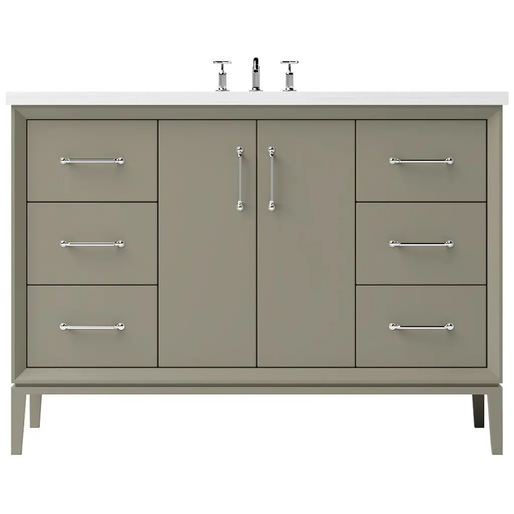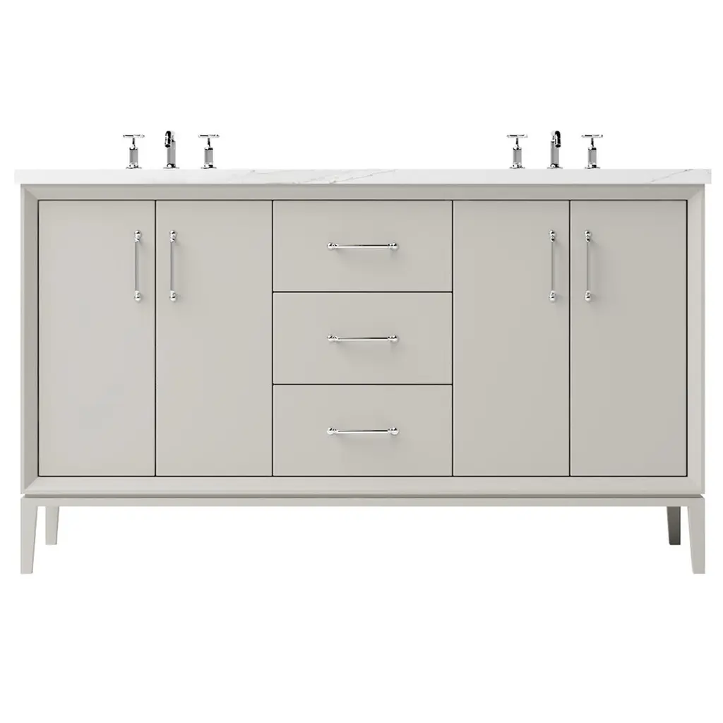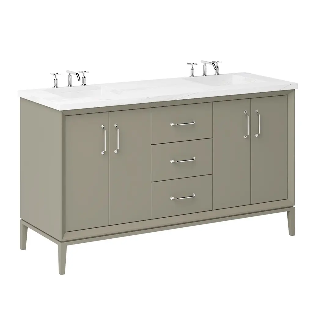 The Hawthorne Double Bathroom Vanity is a timeless piece that captures the essence of mid-century revival style with grace and elegance. This freestanding vanity is a testament to exquisite craftsmanship, featuring an angled frame and beautifully tapered legs that evoke a sense of nostalgia and charm. Designed to accommodate both form and function, this double vanity boasts two full-height door sink bases, complemented by a shared 16-inch drawer bank in between, all equipped with soft-close doors and drawer glides for a seamless experience. With its versatile design, the Hawthorne Double Bathroom Vanity is available in a variety of unique finishes and sizes, allowing it to effortlessly blend into any bathroom setting. Let this enchanting vanity be the centerpiece of your bathroom, where style meets practicality in perfect harmony.