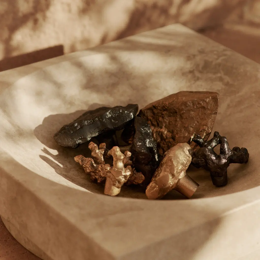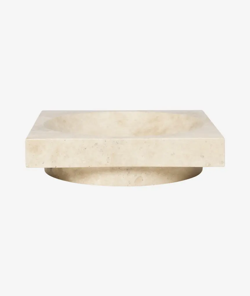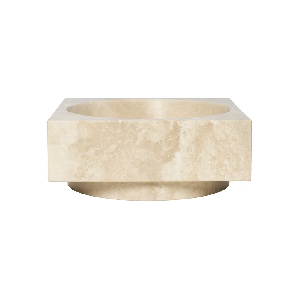 Add a touch of sophistication and elegance to your space with the Hew High Centrepiece from Ferm Living. This stunning piece from the Hew Series boasts a solid travertine design, featuring a square shape with a rounded concave center. Its monolithic presence and minimalist design make it a striking centerpiece, showcasing the material sophistication of travertine. Highlights