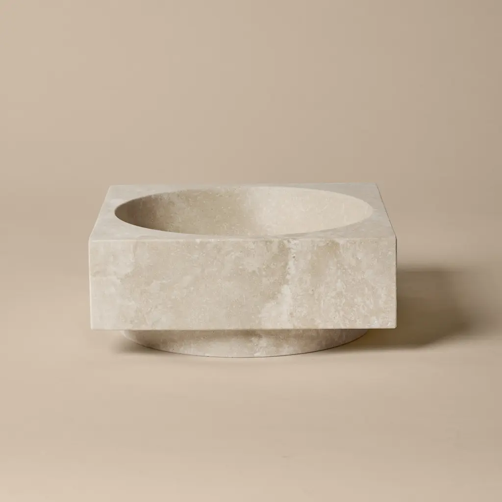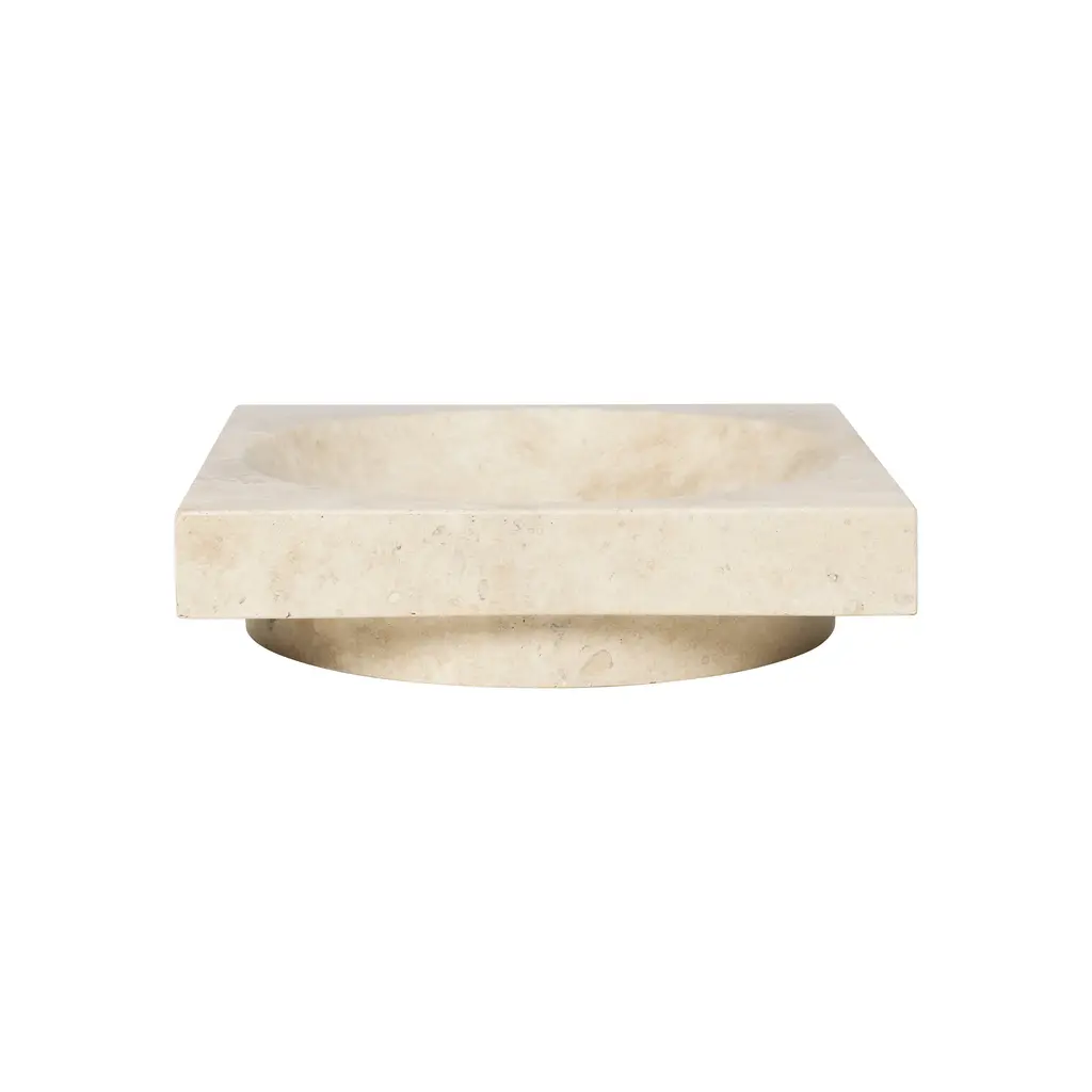 Add a touch of sophistication and elegance to your space with the Hew High Centrepiece from Ferm Living. This stunning piece from the Hew Series boasts a solid travertine design, featuring a square shape with a rounded concave center. Its monolithic presence and minimalist design make it a striking centerpiece, showcasing the material sophistication of travertine. Highlights