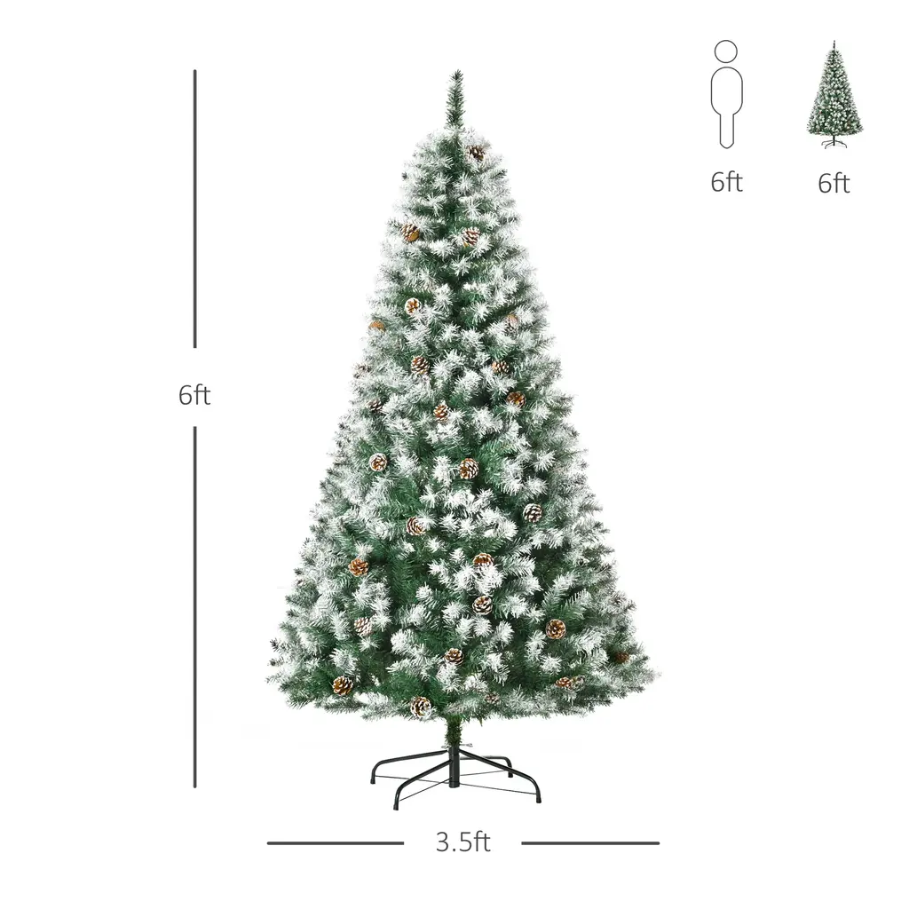 Homcom 6 Ft. Flocked Christmas Tree With Pine Cones, Pre-Decorated Christmas Tree With Stand, Fir Christmas Tree - 6 Foot - Green