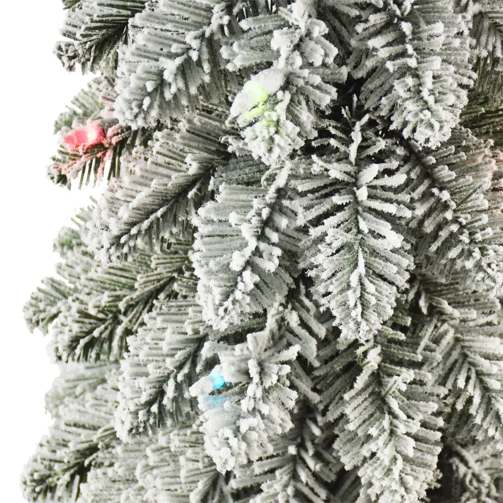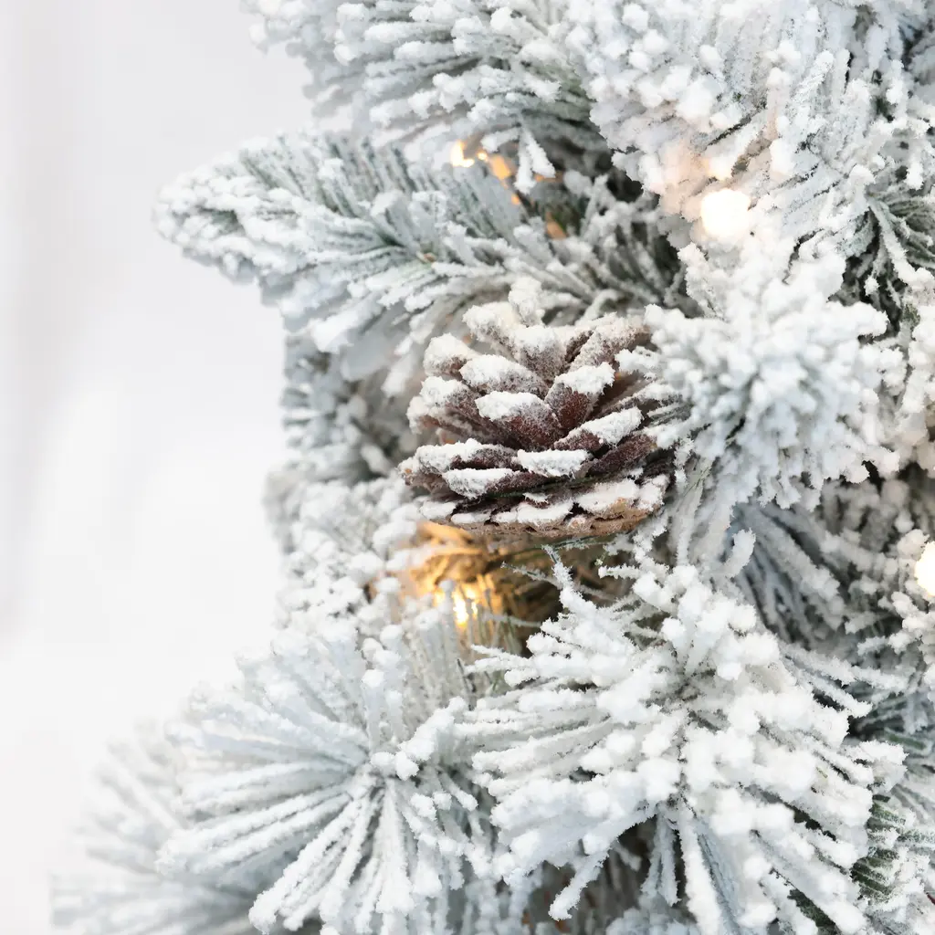These flocked branches bring the feeling of a white Christmas into your home. The frosty pine cones add realistic natural details, like forestry after a fresh snowfall. Our 6 ft. beauty and its flurried appearance offer wintry charm. The life-like full and lush branches will be a striking centerpiece for your family's holiday décor, this year and in years to come. Features:Specification: