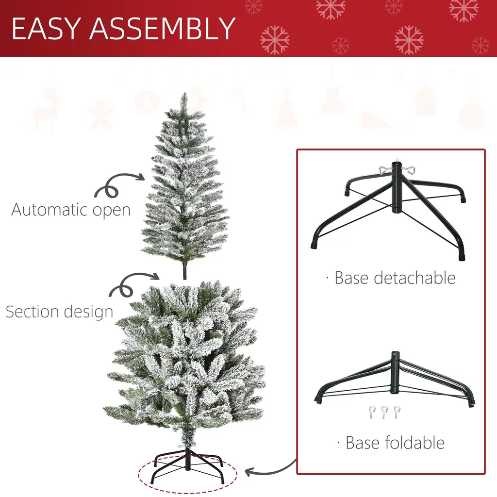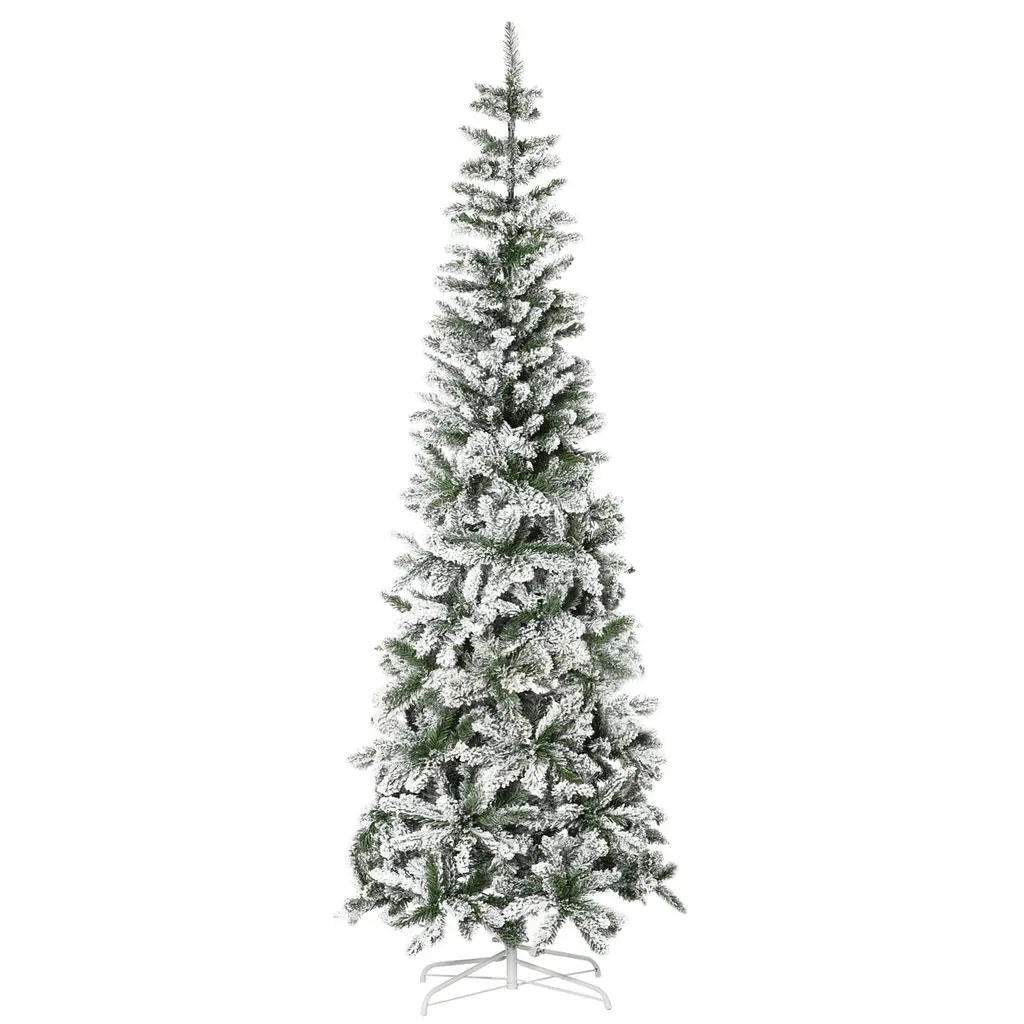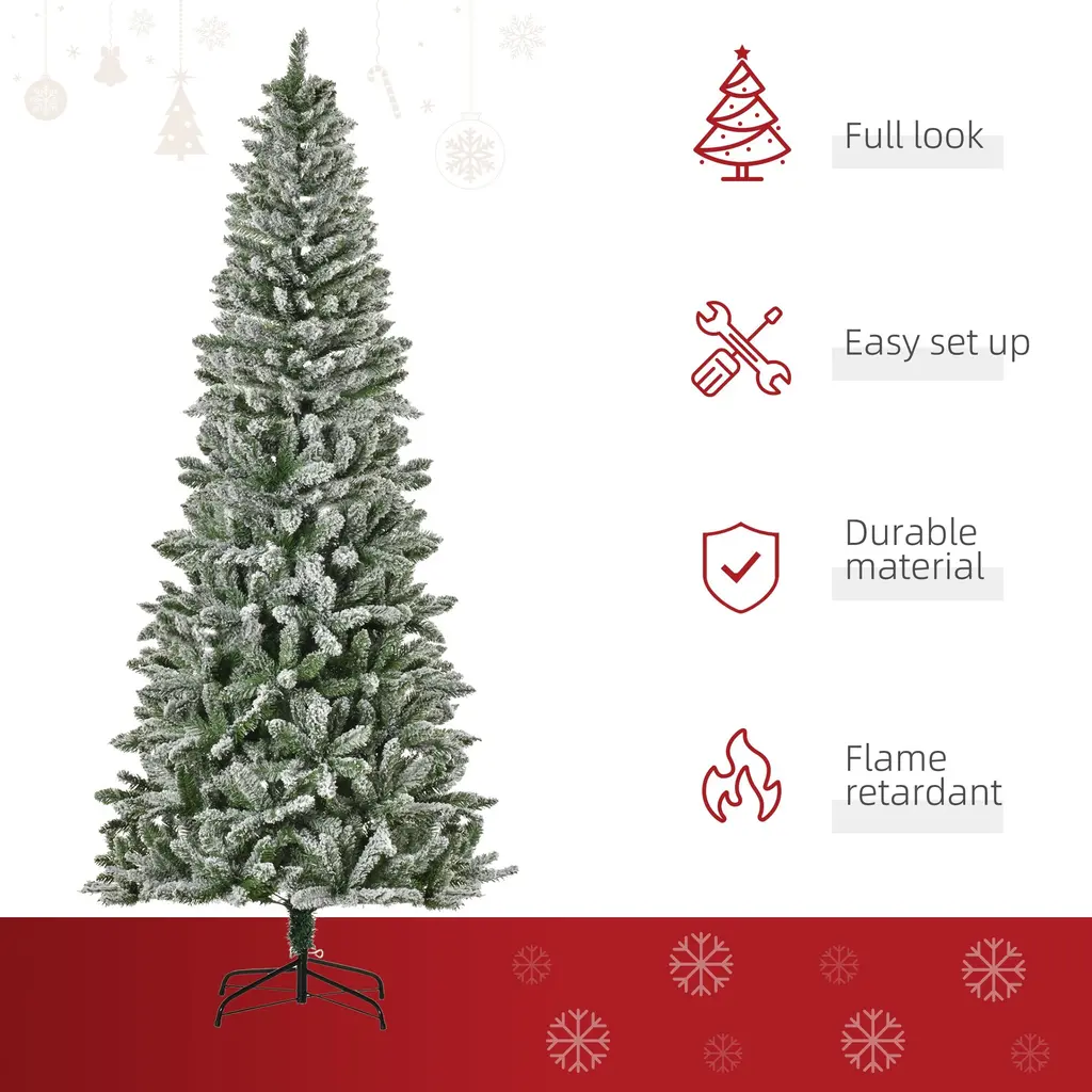 Homcom Slim Flocked Christmas Tree With Stand - 6 Foot