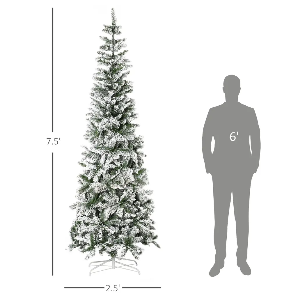 Homcom Slim Flocked Christmas Tree With Stand - 7.5 Foot