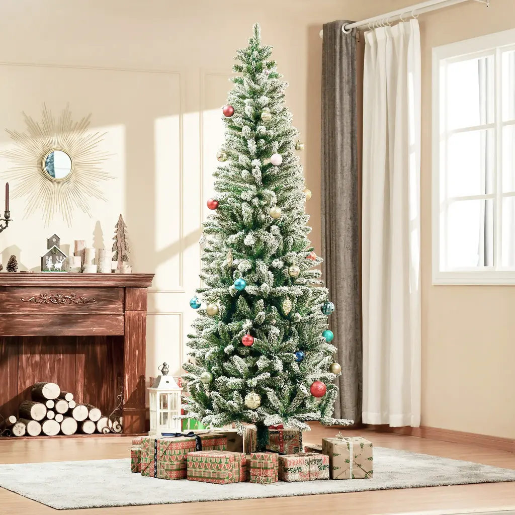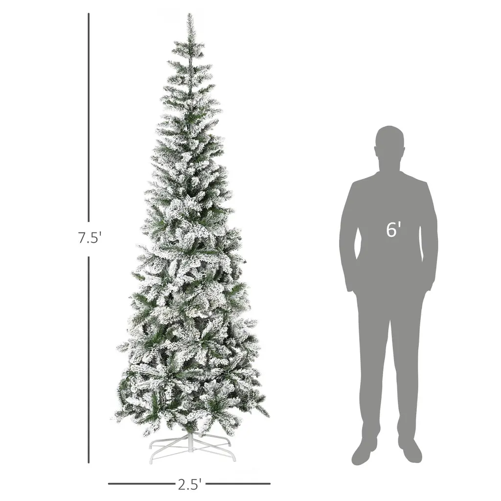 Homcom Slim Flocked Christmas Tree With Stand - 9 Foot