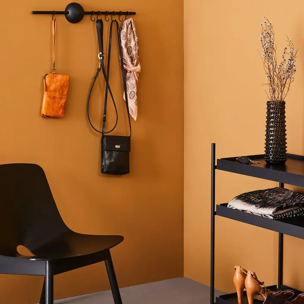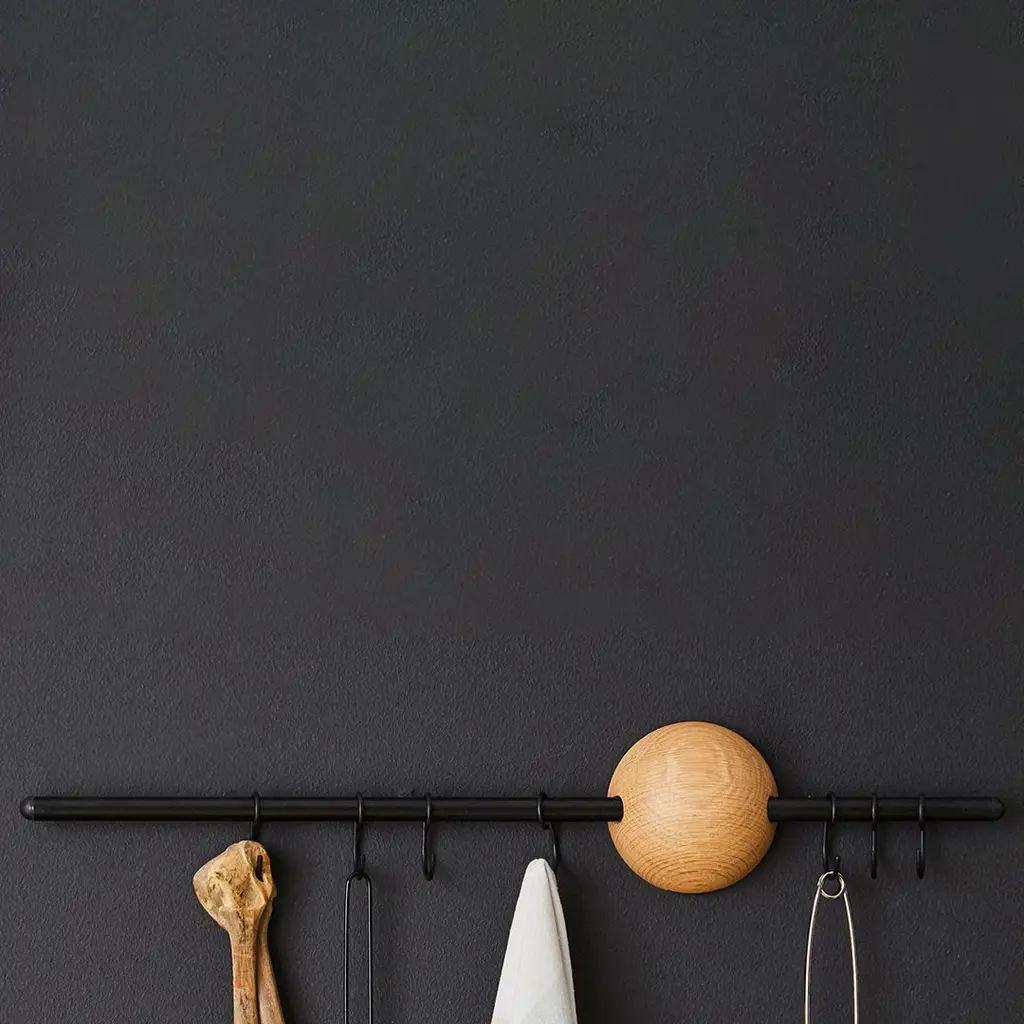 A stick and a couple of rings. These shapes inspired the Danish designer, Jeanette Holdgaard, during a game of ring the stick in the garden with her friends. With an aim to merge the simplicity and joy of the play into a design function, the Hoop rack emerged. The simplicity occurs in the clear lines forming a distinctive silhouette. Beautifully combining wood and metal. Slide the rack through the centerpiece and choose between three different positions. The versatility of Hoop also shows in the functionality. Together with the minimalistic design, the rack can be used for multiple purposes. Place it in small spaces like kitchens to hang tea towels and kitchen utensils or the hallway to store and display bags together with jackets.