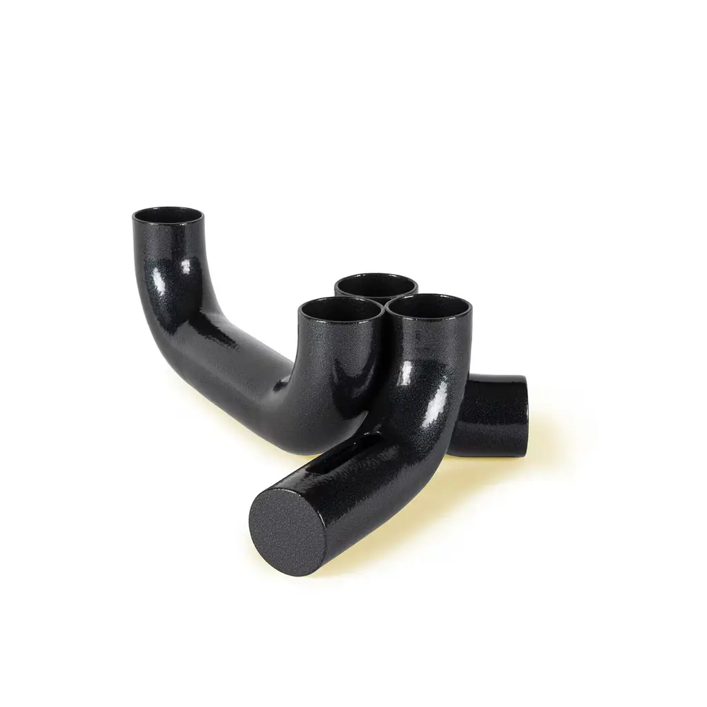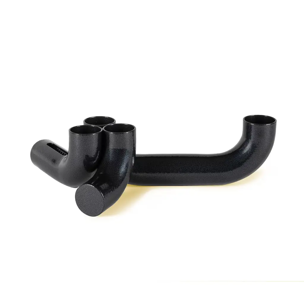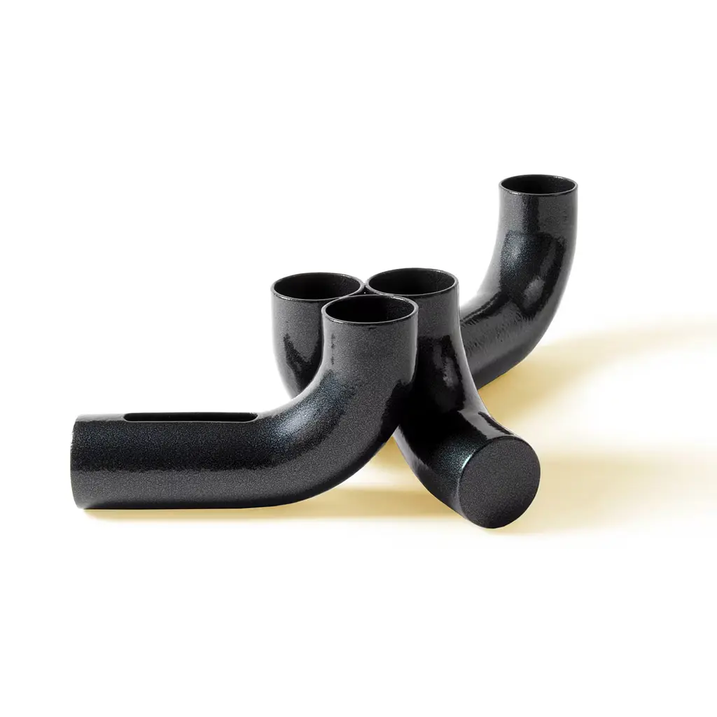 Imagine being able to garnish dishes with fresh herbs right from your table, an age-old practice now revitalized. "Impianto" is a centerpiece that houses edible herbs and visually pleasing plants. It's made from prefabricated tubular elements intricately woven like plant roots, creating a linear yet complex form. This design accommodates both herbs and a cellphone, seamlessly blending aesthetic appeal with modern functionality for everyday life.
