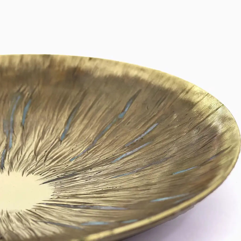 Inspired by a mesmerizing iris, this brass bowl is deftly handmade using recycled materials. Displaying a luminous mirrored finish, the center symbolized the pupil, while the rest of the body is enhanced with splendid grooves recalling an iris. This one-off design can only be reproduced in numbered pieces upon request, please contact the Concierge for details.