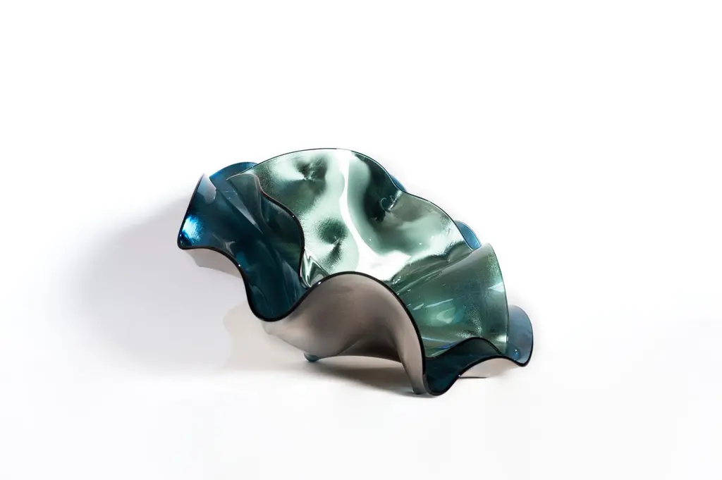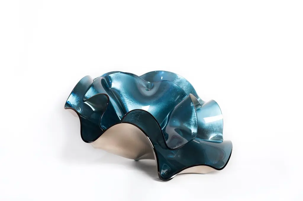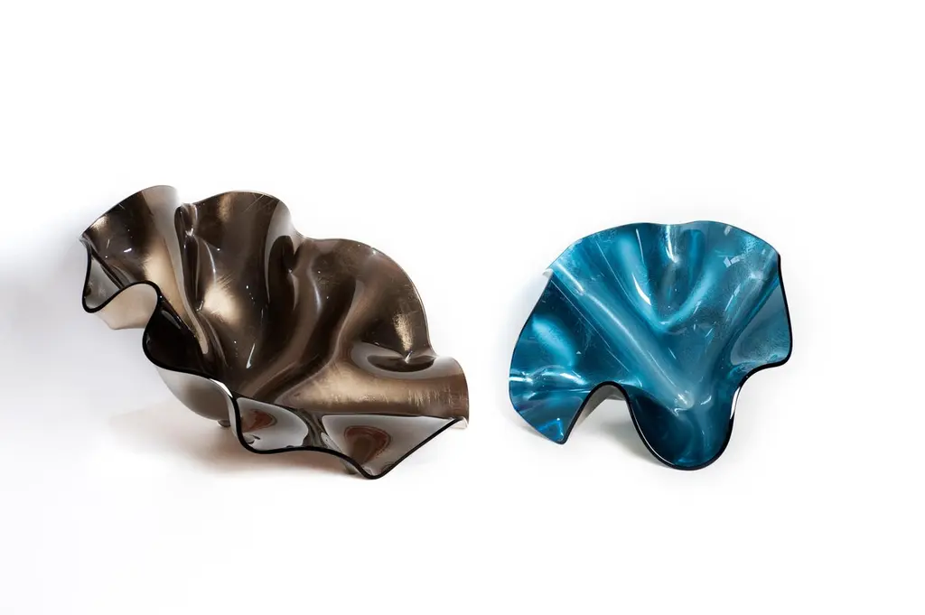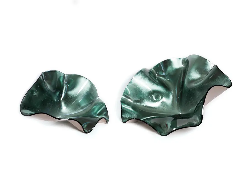 Set two Lilyz centerpiece created by Orfeo Quagliata from our new collection IZDATGLAZ. These shimmering glass gems create a simple modern touch for any space. Whether it’s gold, silver or one of the velour like colors they create a simple but bold statement. We have invented this new technique that involves a unique system to create the metallic, velour like feeling in the objects. It is a very artisanal process where each piece is one of a kind; handcut, polished and thermoformed. There will always be some slight love marks or details that ocurre during the creation of each piece.Dimensions and shape may vary.The colors are customizable.