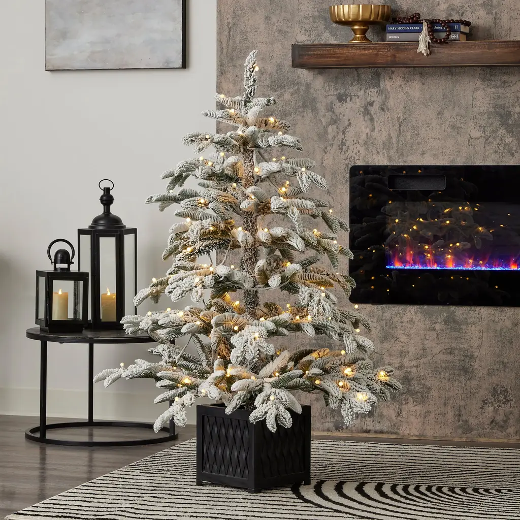 Jackson Flocked 4.5ft Pine Tree Pre-Lit With Warm White Led Lights - 4 Foot
