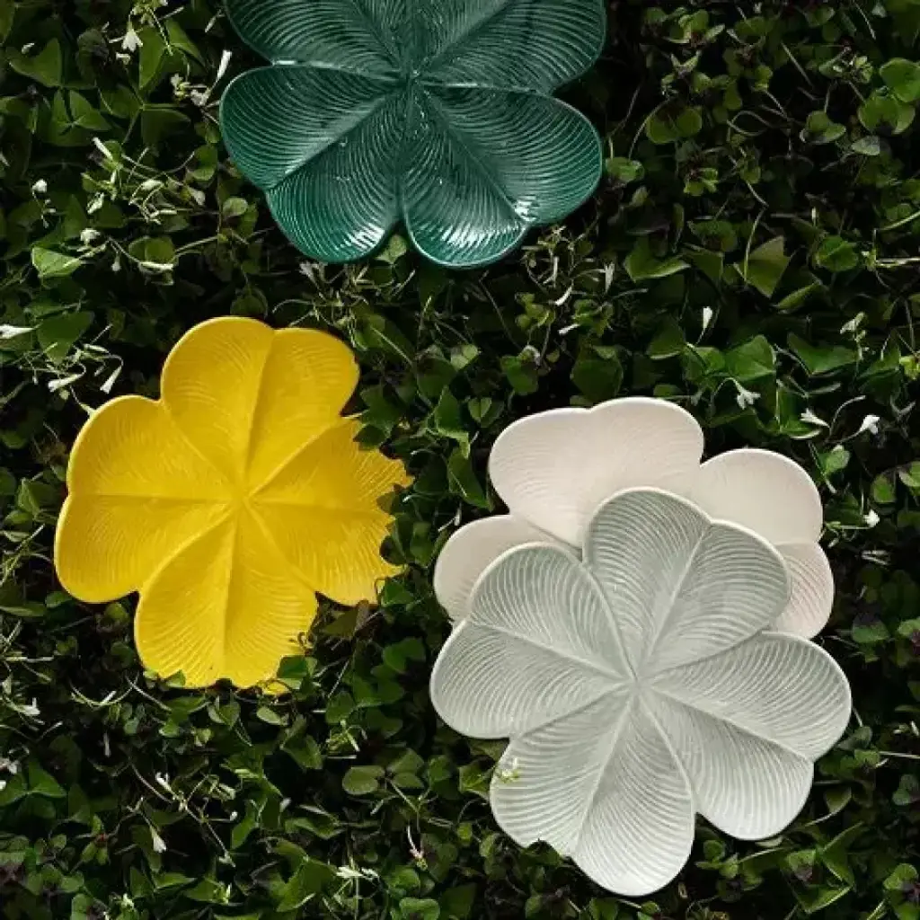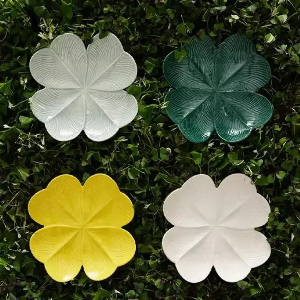 Jour De Chance Centerpiece Trèfle Kaolin White 11 13/16" Dia - 2 H