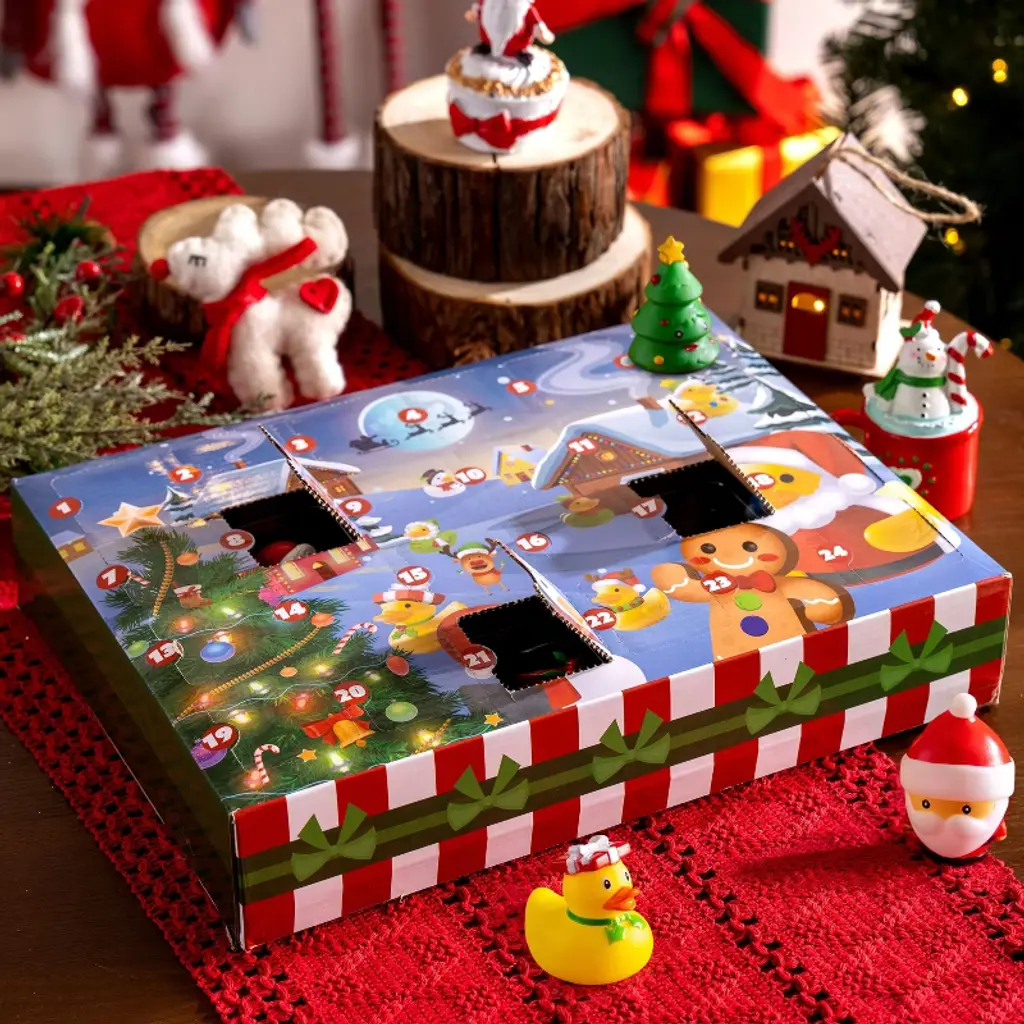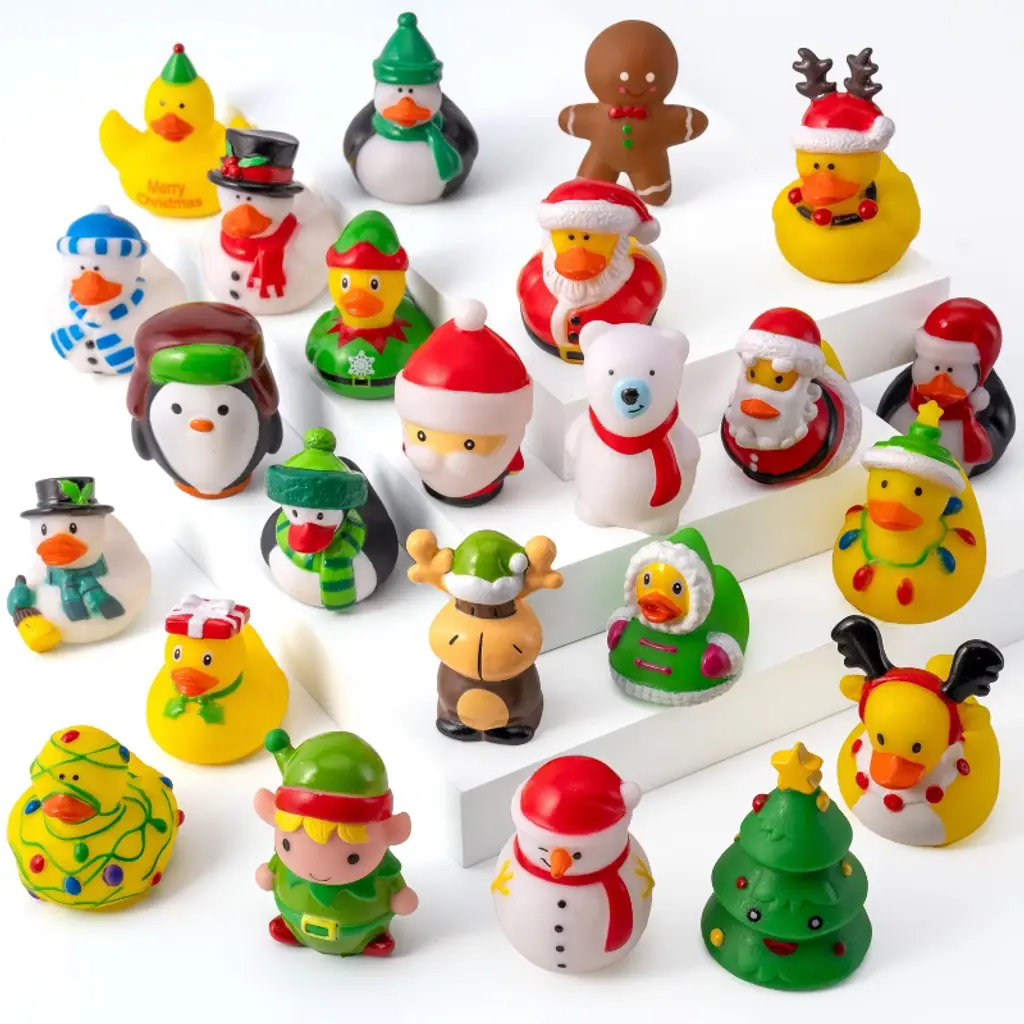 Turn the countdown to Christmas into a daily celebration of joy with the Joyfy Holiday Advent Calendar! This delightful set features 24 windows, each concealing a uniquely designed rubber duck dressed in festive holiday attire like Santa, Snowman, and other cheerful characters. From December 1st right through to Christmas Eve, watch your child's anticipation and holiday spirit grow with each new surprise reveal. More than just bath time companions, these ducks are cherished collectibles that inspire imaginative play and create lasting family memories. Meticulously crafted from premium, child-safe materials, this advent calendar is the perfect centerpiece for your holiday traditions. It’s the gift that keeps on giving all December long, making it an ideal and unforgettable present for any child.