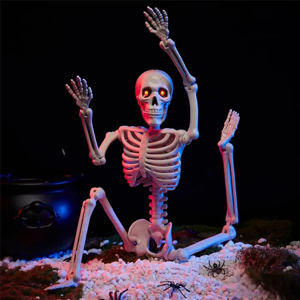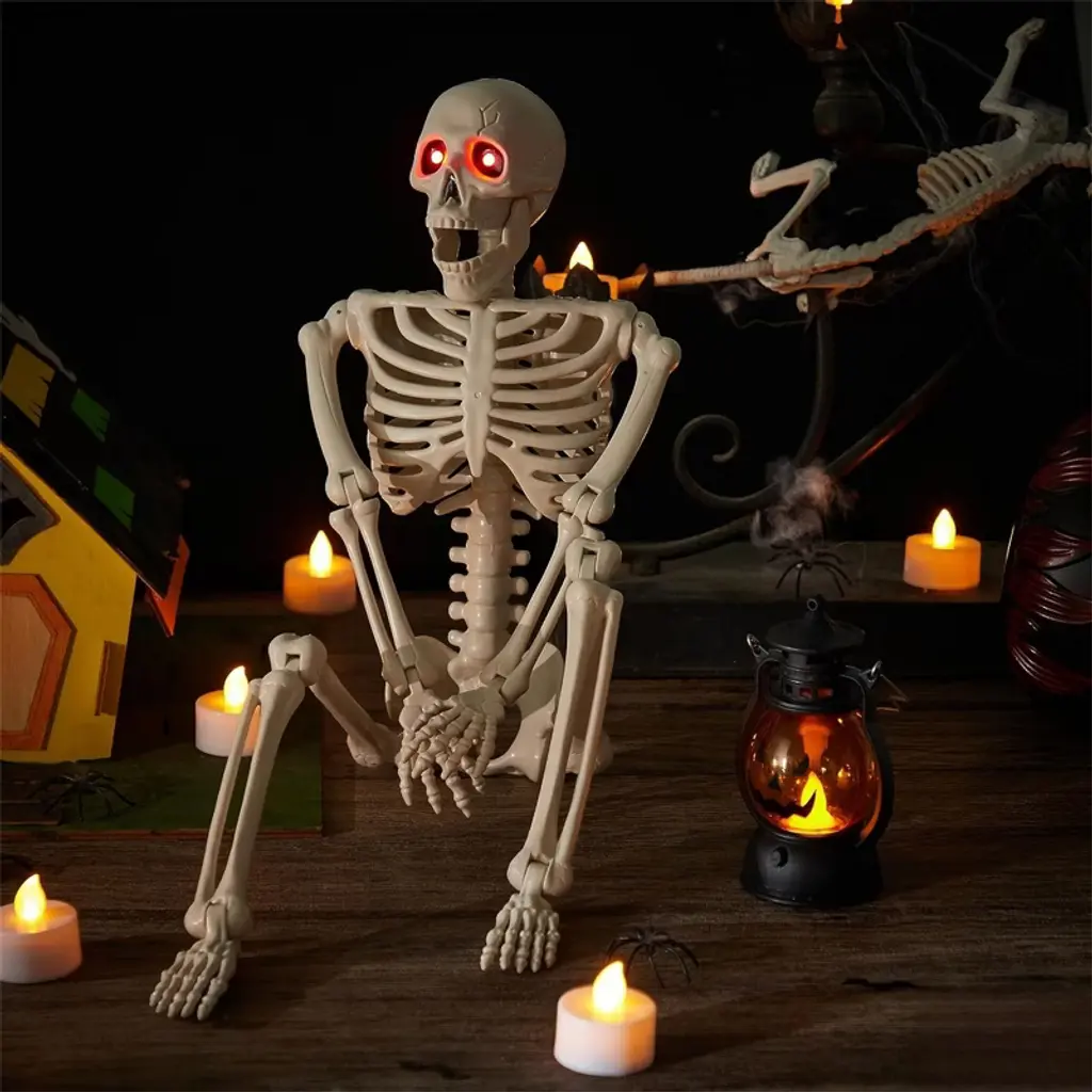 Joyfy 24'' Halloween Skeleton Decorations With Led Glowing Eyes Full Body Posable For Indoor/outdoor Decor Spooky Scene Party Favors Graveyard Props