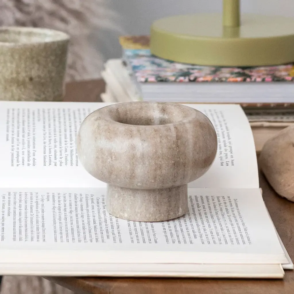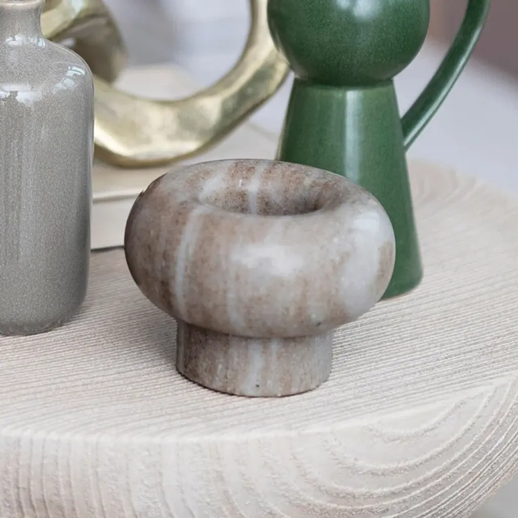 Elevate your tabletop ambiance with this elegant marble candle holder, designed to hold a tealight candle. The smooth, sleek marble material adds a touch of sophistication to any setting, making it an ideal centerpiece for intimate dinners or cozy gatherings. With a single candle capacity, it's just the right size for creating a warm, inviting atmosphere in your living space. So go ahead, light up the night and enjoy the glow – your home deserves it.