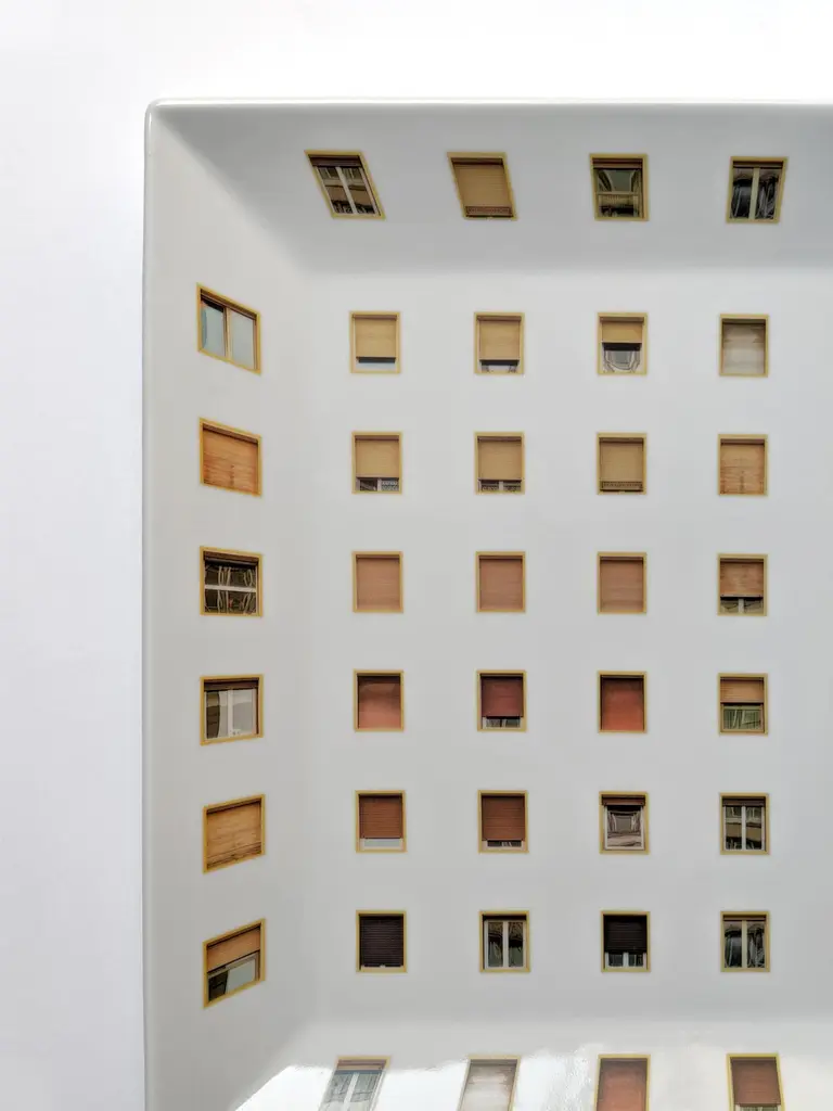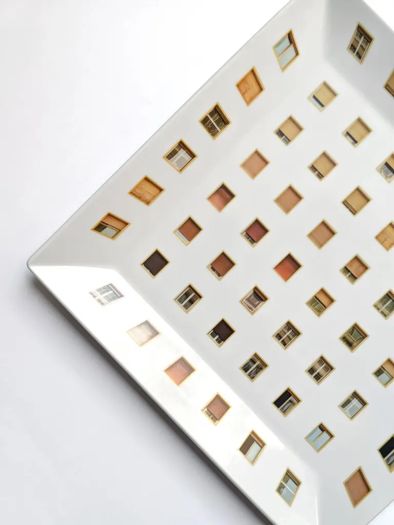 La Finestra sul Cortile is a collection of centrepieces and pocket empties with simple, square shapes on which various building facades are placed. The range of decors is broad: from the endless windows of the first skyscrapers to the typical shutters of Italian cities via more decorative and international styles, all designed to create a sense of three-dimensionality. The extremely contemporary and modern decors blend perfectly with these simple shapes, giving the environment in which they are placed an artistic and eclectic touch.