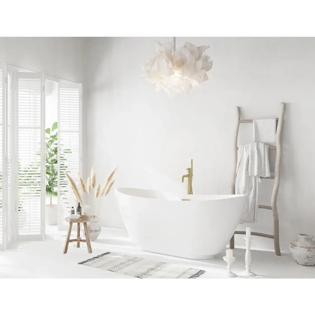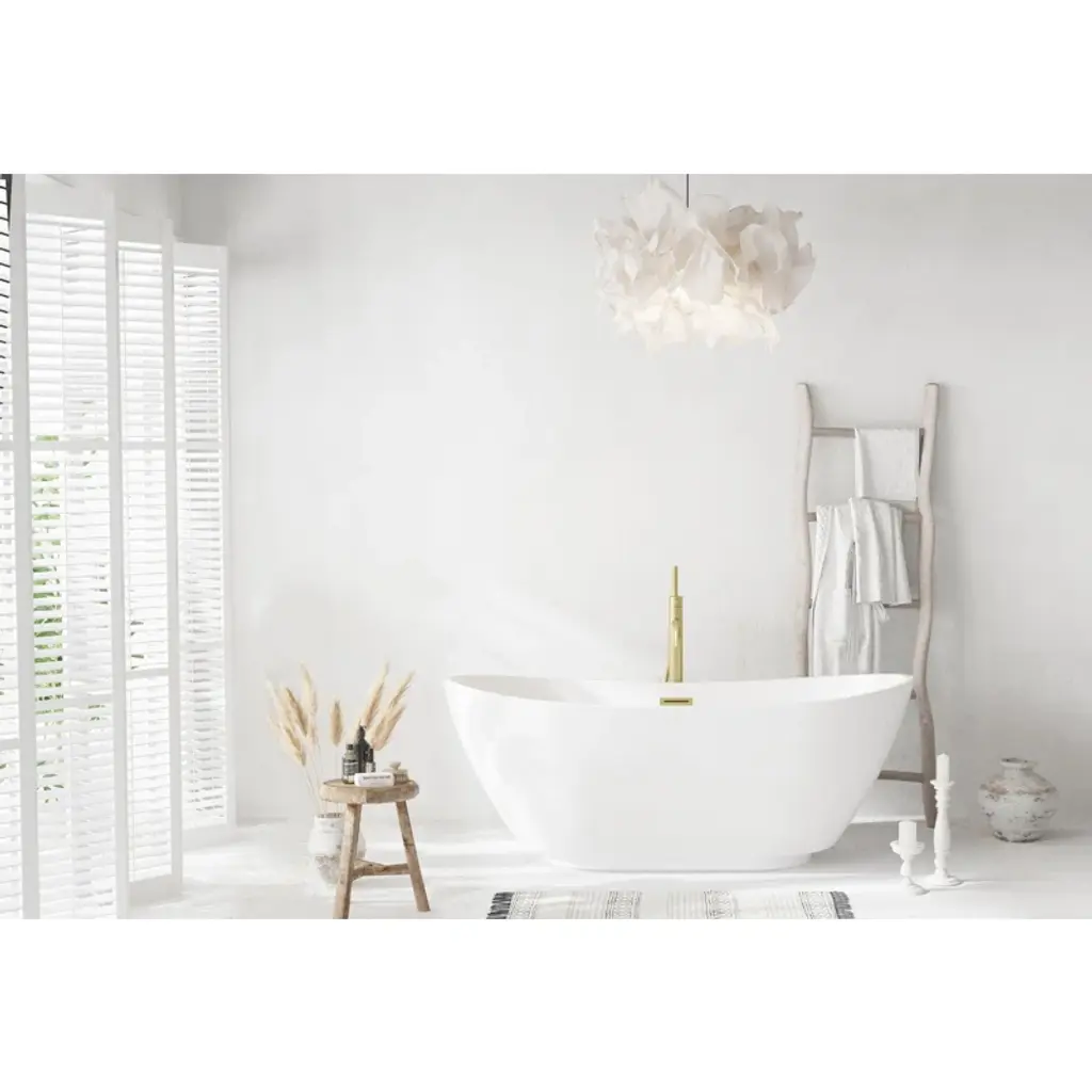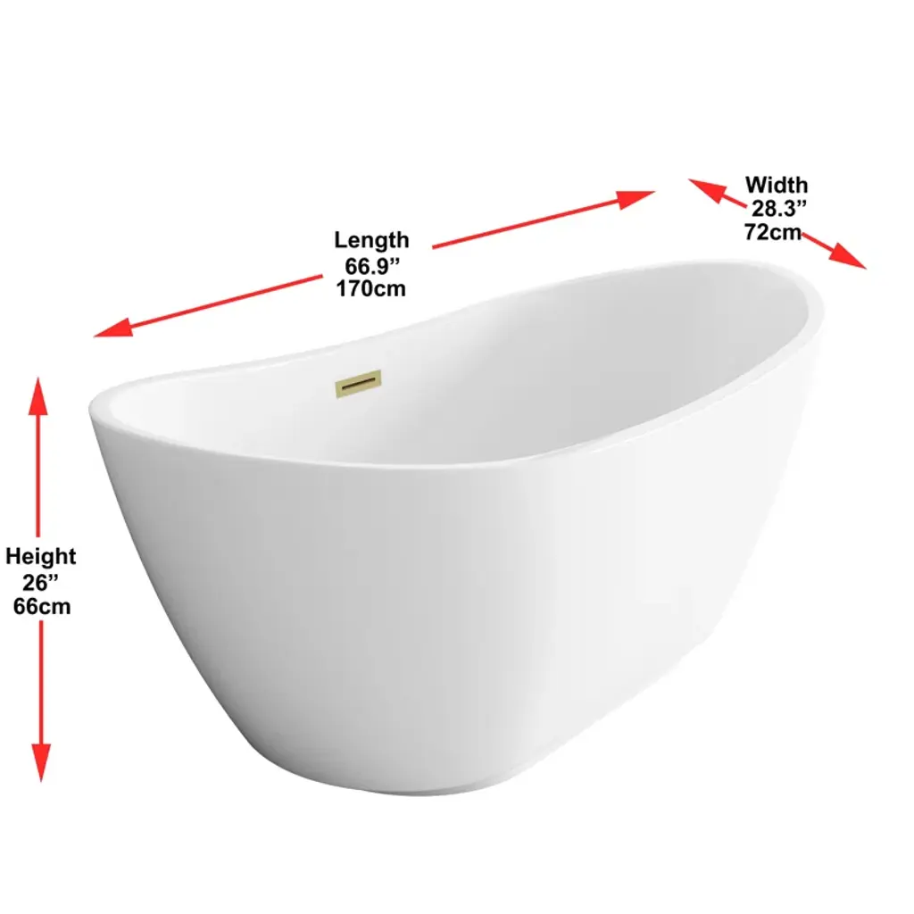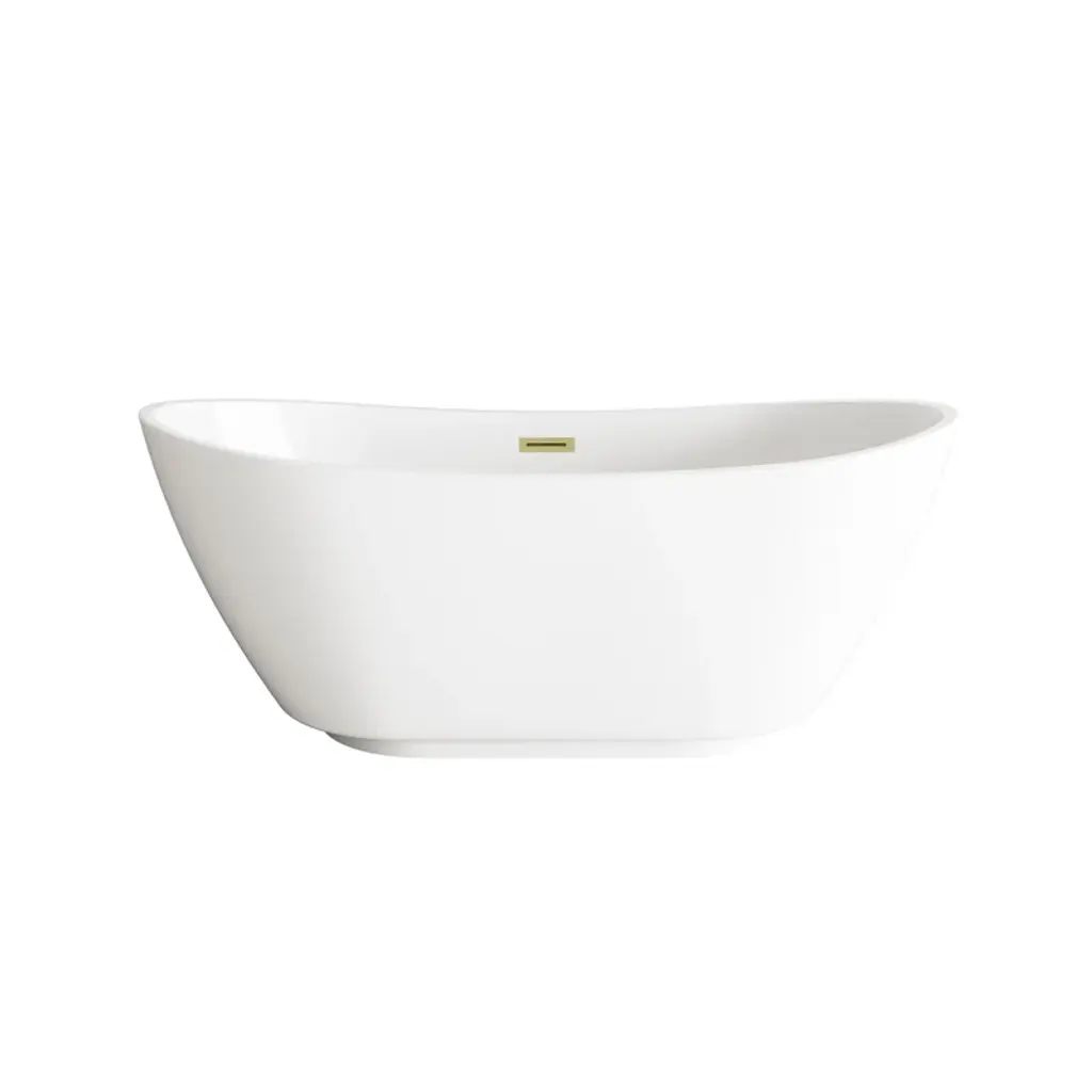 Indulge in the luxury of a spa-like experience right in your home with this stunning freestanding bathtub. Crafted from premium-quality acrylic, it is built to withstand daily use while maintaining its beautiful glossy finish. The stain and scratch-resistant surface ensures easy maintenance, keeping it bright and clean for years. The bathtub features gently sloped curves that hug your body, providing a deep and soothing soak. With a variety of metal trims to choose from, you can easily coordinate your tub with your faucet and bathroom fixtures. Easy to install and versatile in placement, this freestanding bathtub is the perfect centerpiece for any modern bathroom.