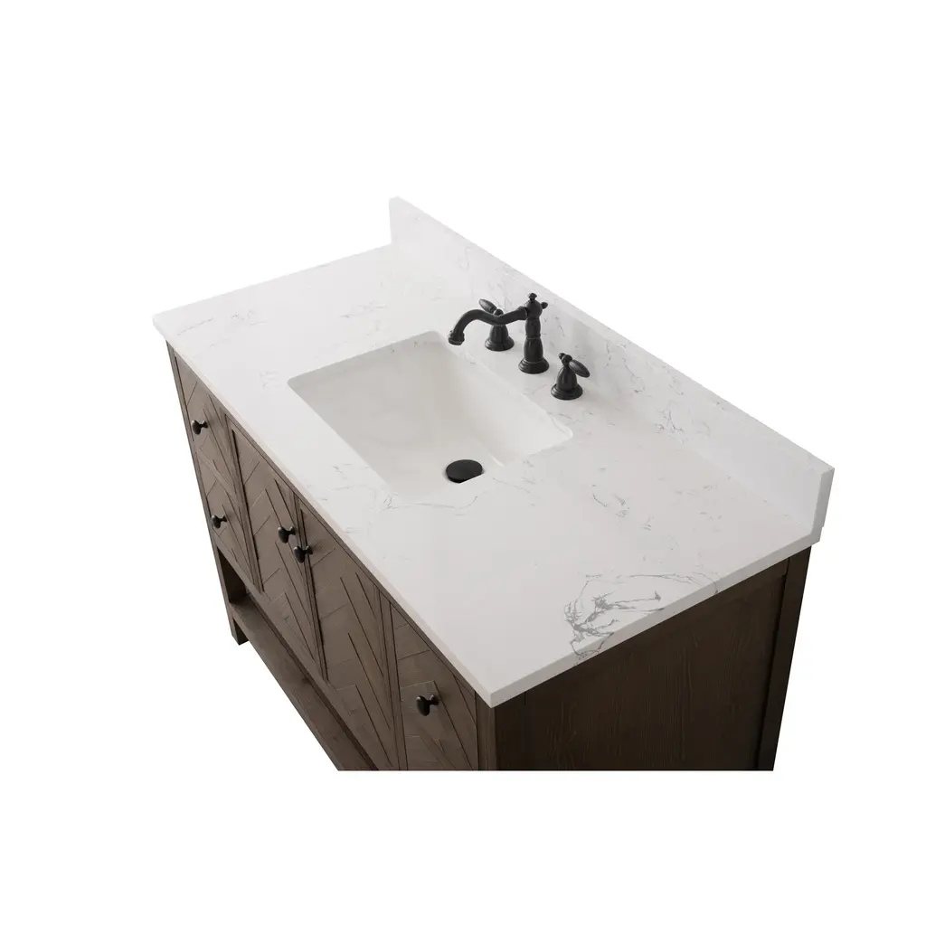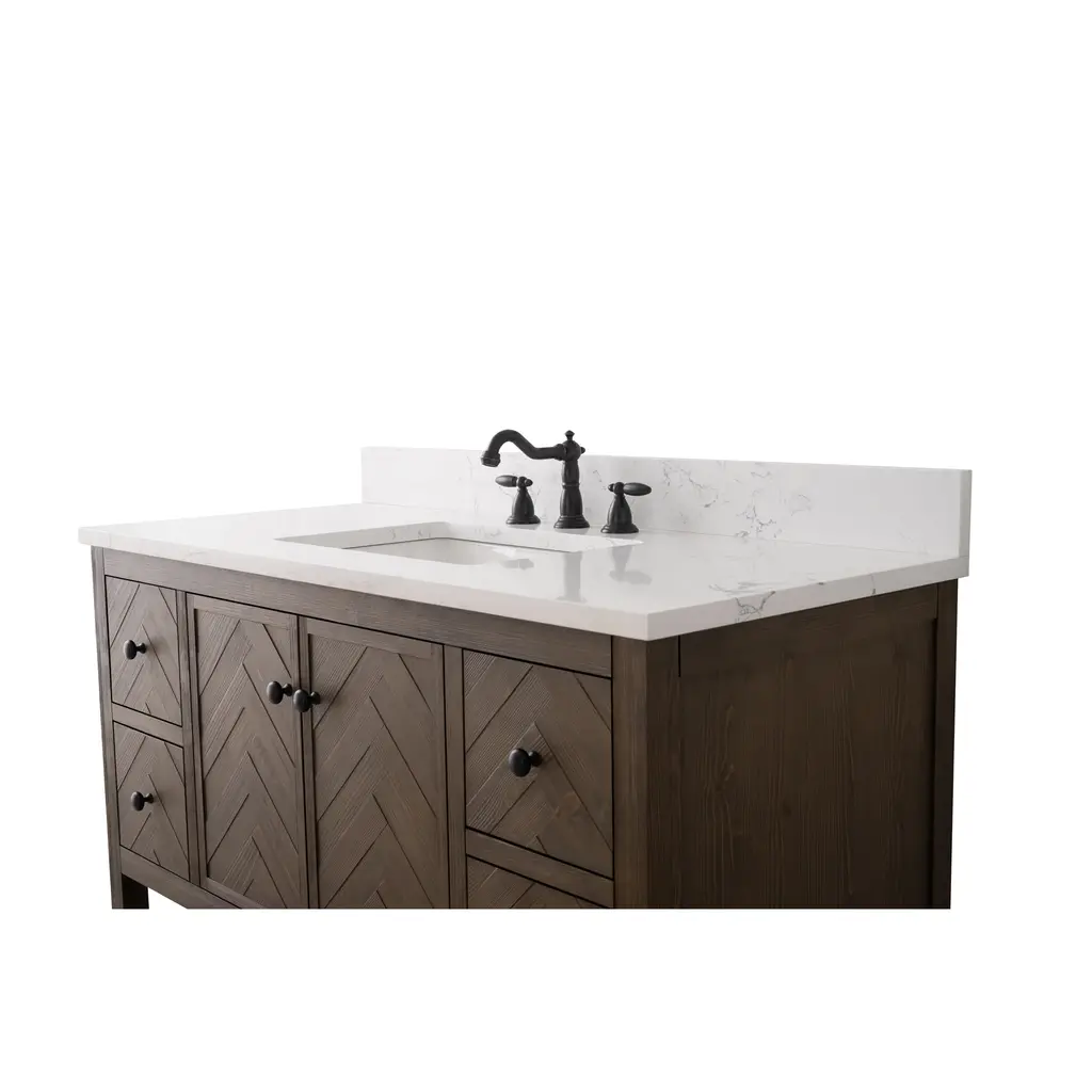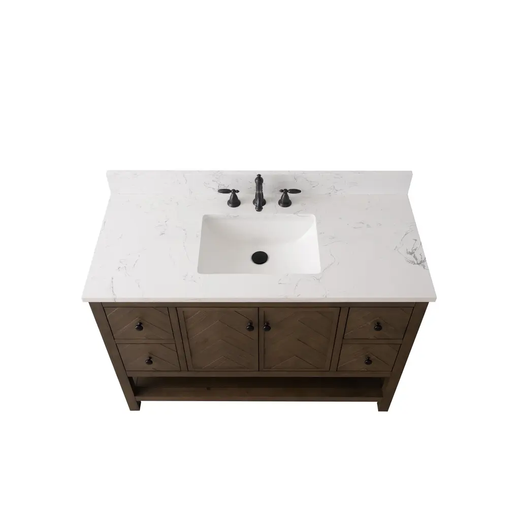 Landon Modern Herringbone Bathroom Vanity, 48", White Top