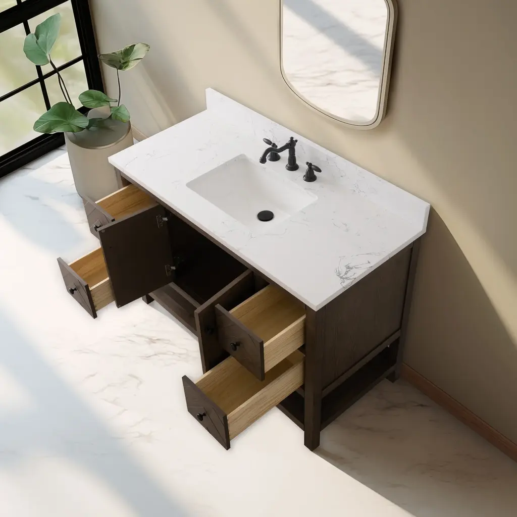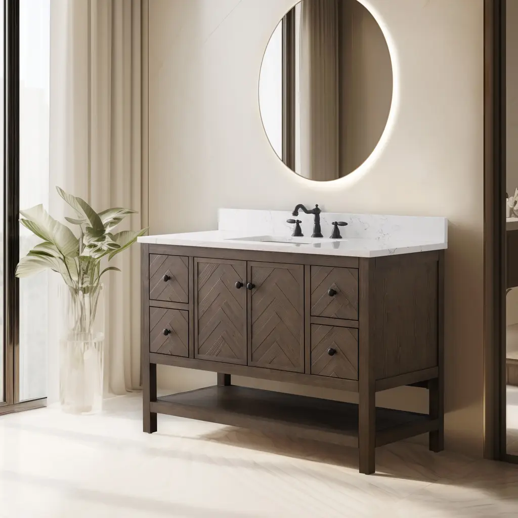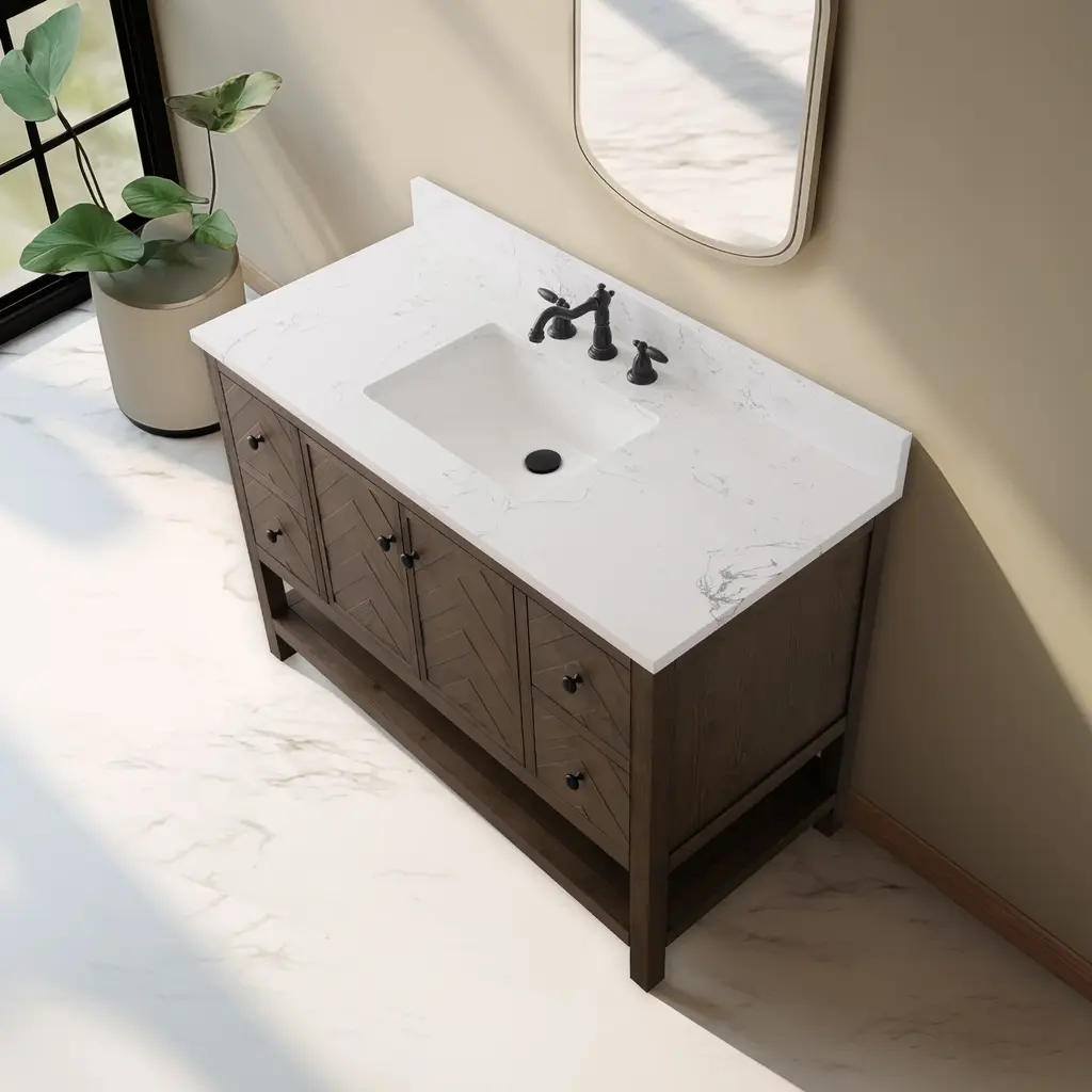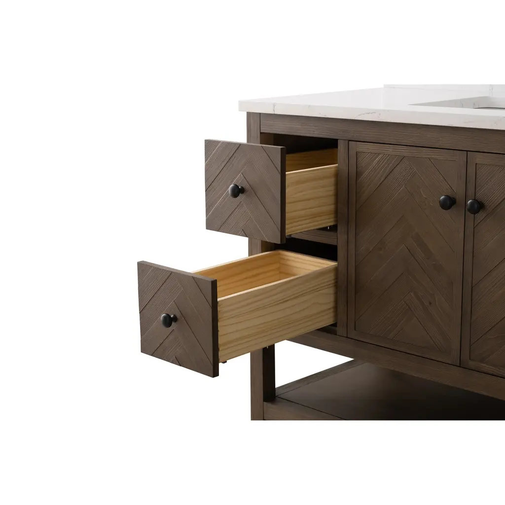 Landon Modern Herringbone Bathroom Vanity, 48", White Top
