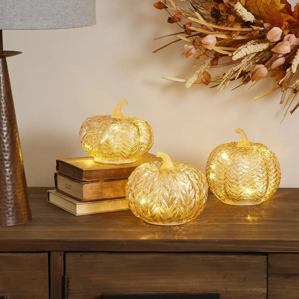 Led Mercury Glass Pumpkin Decor, Set Of 3