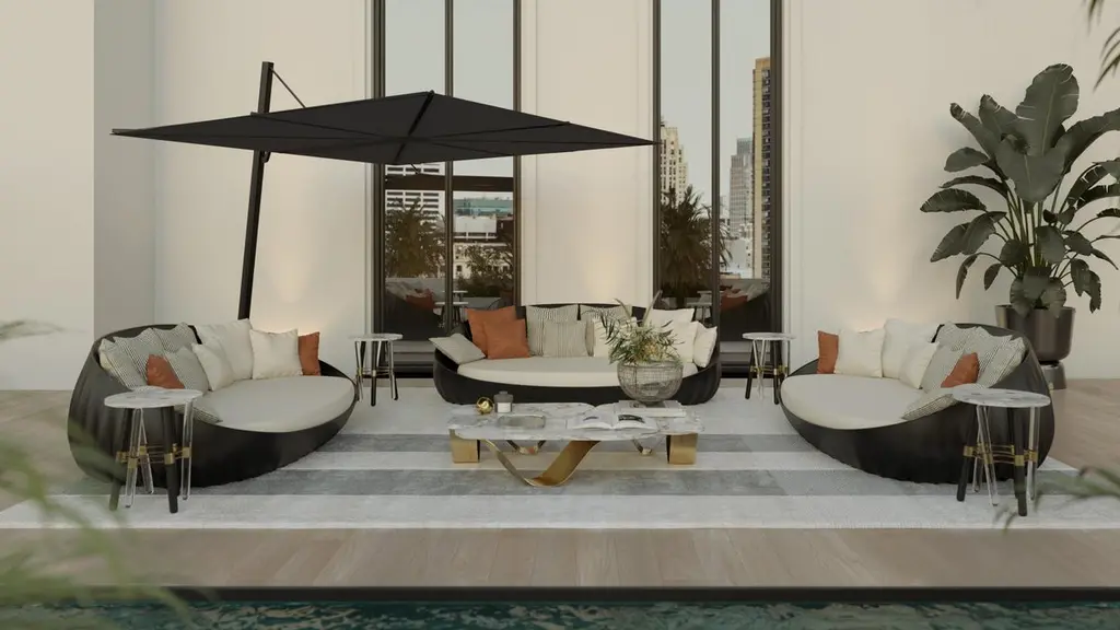 Pearl, outdoor sofaThe Pearl Sofa combines a fiberglass structure with a distinctive shell-shaped design and high-performance outdoor cushions, ensuring exceptional comfort and support. Perfect for lounge areas or poolside settings, it is the ideal centerpiece that blends design and comfort with outstanding performance in any outdoor environment.One of the standout features of the Pearl sofa is its seat base with a water drainage system. This feature ensures that any water that accumulates on the sofa is quickly drained away, leaving the cushions dry and comfortable. Additionally, the bottom of the cushions is made of breathable mesh, providing optimal airflow for maximum comfort during extended periods of use.The Pearl sofa also comes with a set of weather-resistant pillows that are designed to complement the overall aesthetic of the piece. These pillows not only add to the luxurious feel of the sofa but also provide added support for the body.