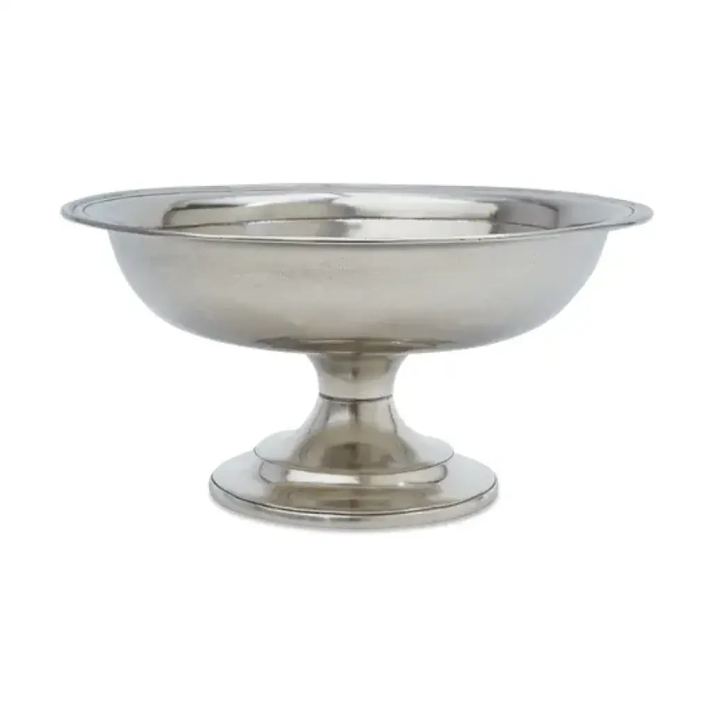 A perfect marriage of classic curves and the simplicity of clean contemporary lines, the Lucca footed centerpiece bowl is equally stunning on a dining table filled with fresh market fruit as it is in an entryway displaying flowers or seasonal gourds. When David Reiss - a graduate of the Rhode Island School of Design - founded MATCH in 1995, he introduced America to the beauty of Italian pewter. MATCH’s pewter, a valuable metal composed of tin, copper, and antimony, is handmade by artisans in Northern Italy. Each piece is made with an alloy that is food safe, lead free, FDA approved and requires very little care. Every piece of Match pewter is marked with the manufacturer's "M" hallmark as well the mark of tin content "95".