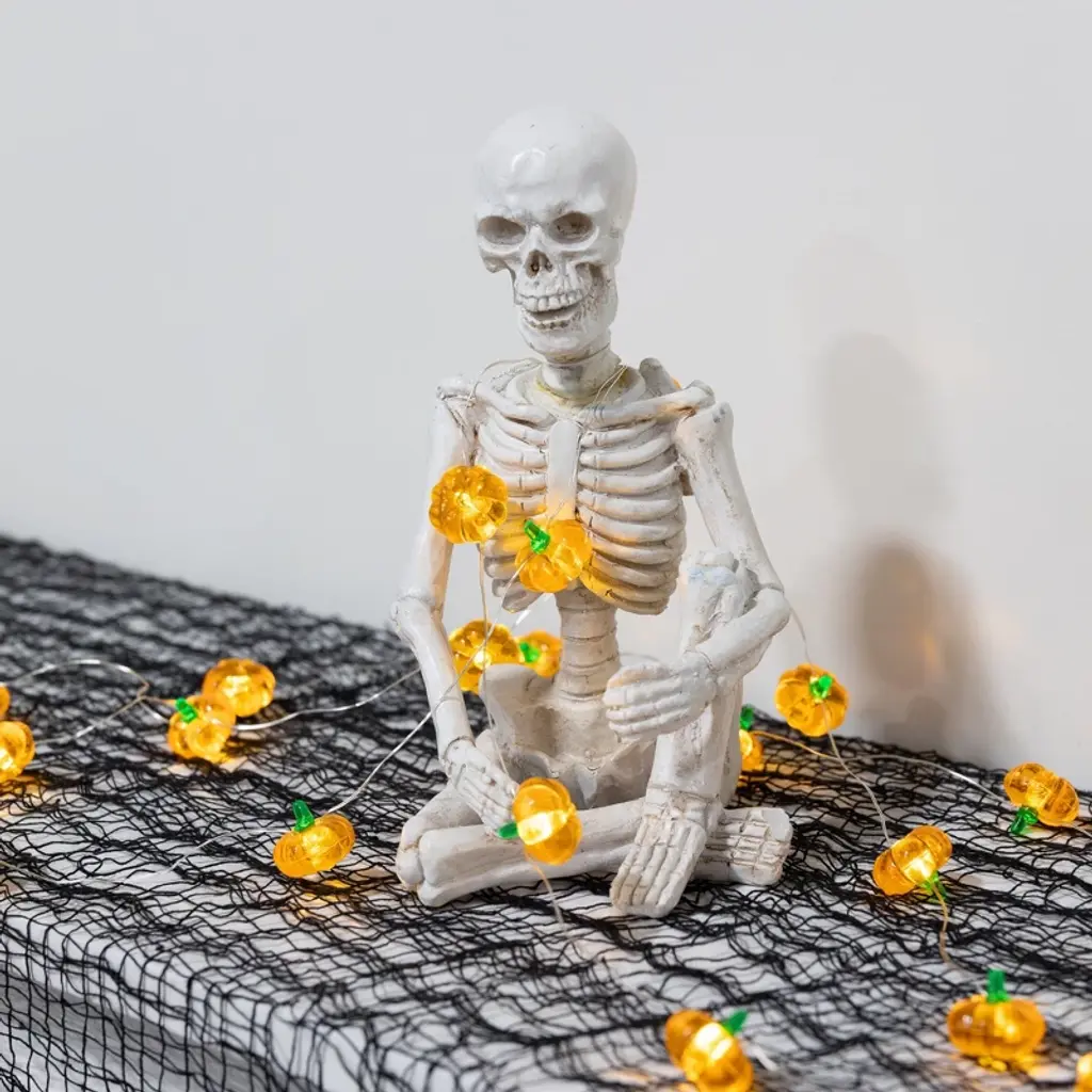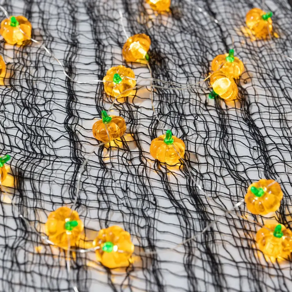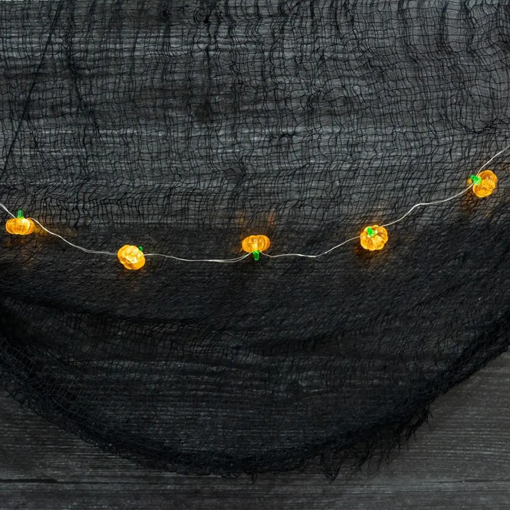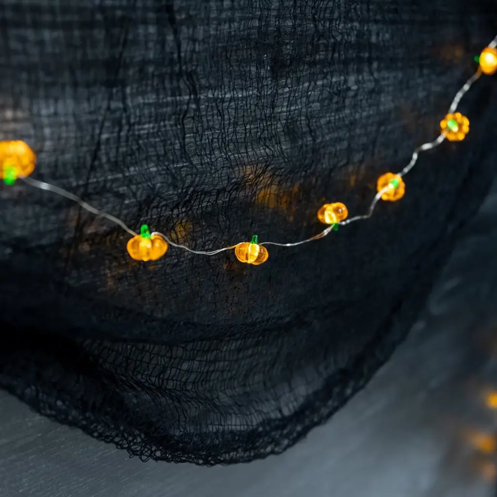 Decorate your home for Halloween with battery-operated mini pumpkin string lights. These festive string lights have 30 steady, warm white LED lights encased by translucent orange pumpkins on an ultra-thin, bendable silver wire. With the convenience of battery power, these pumpkin string lights will add a festive flare indoors or out to vases, wreaths, centerpieces, mantels, table settings, or Halloween costumes. The string light features a timer for 6 hours on and 18 hours off. String light requires 2 AA batteries (not included).