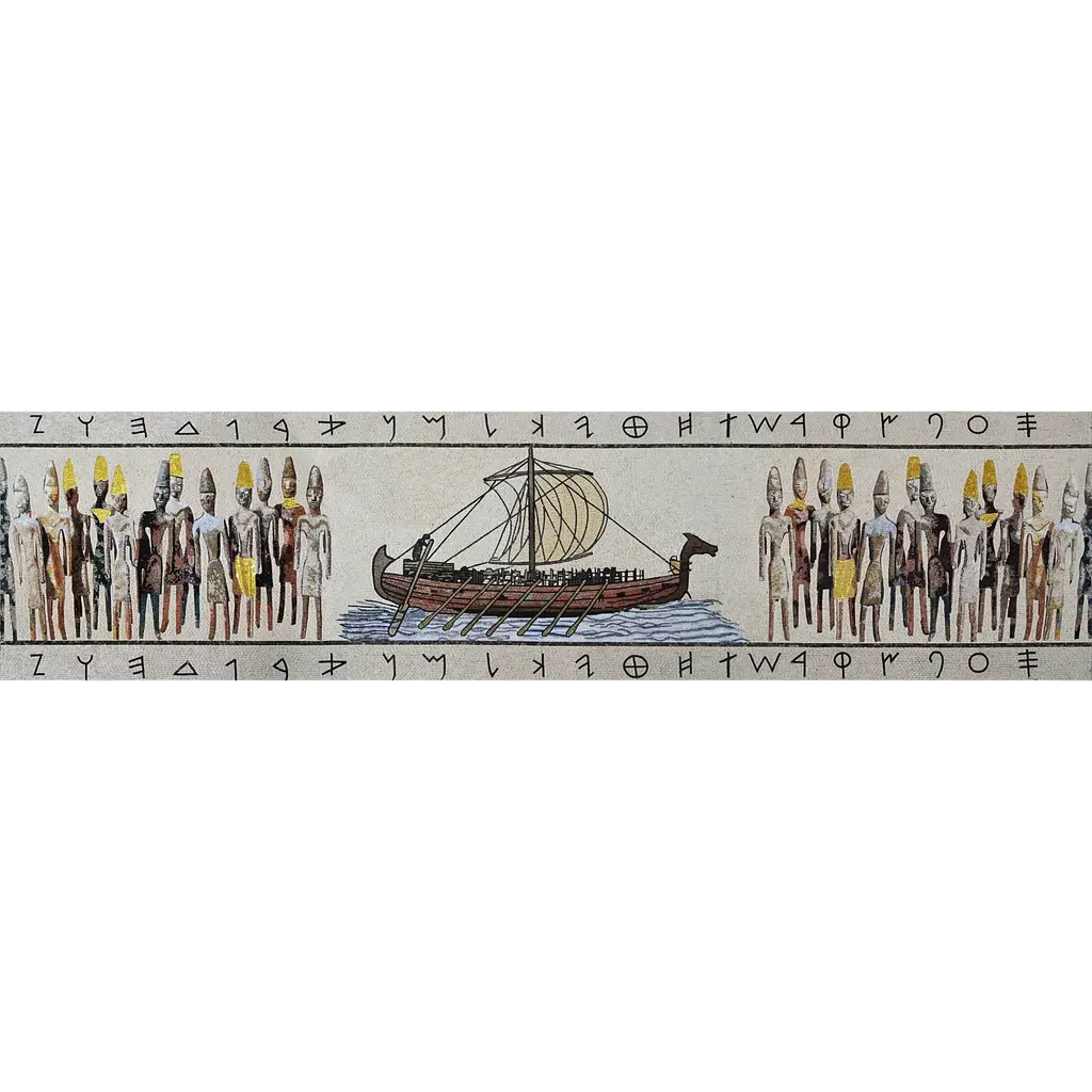 Marble Mosaic Mural- Phoenician Ship And Civilization - 416cm X 104cm (164" X 41") / Without Frame