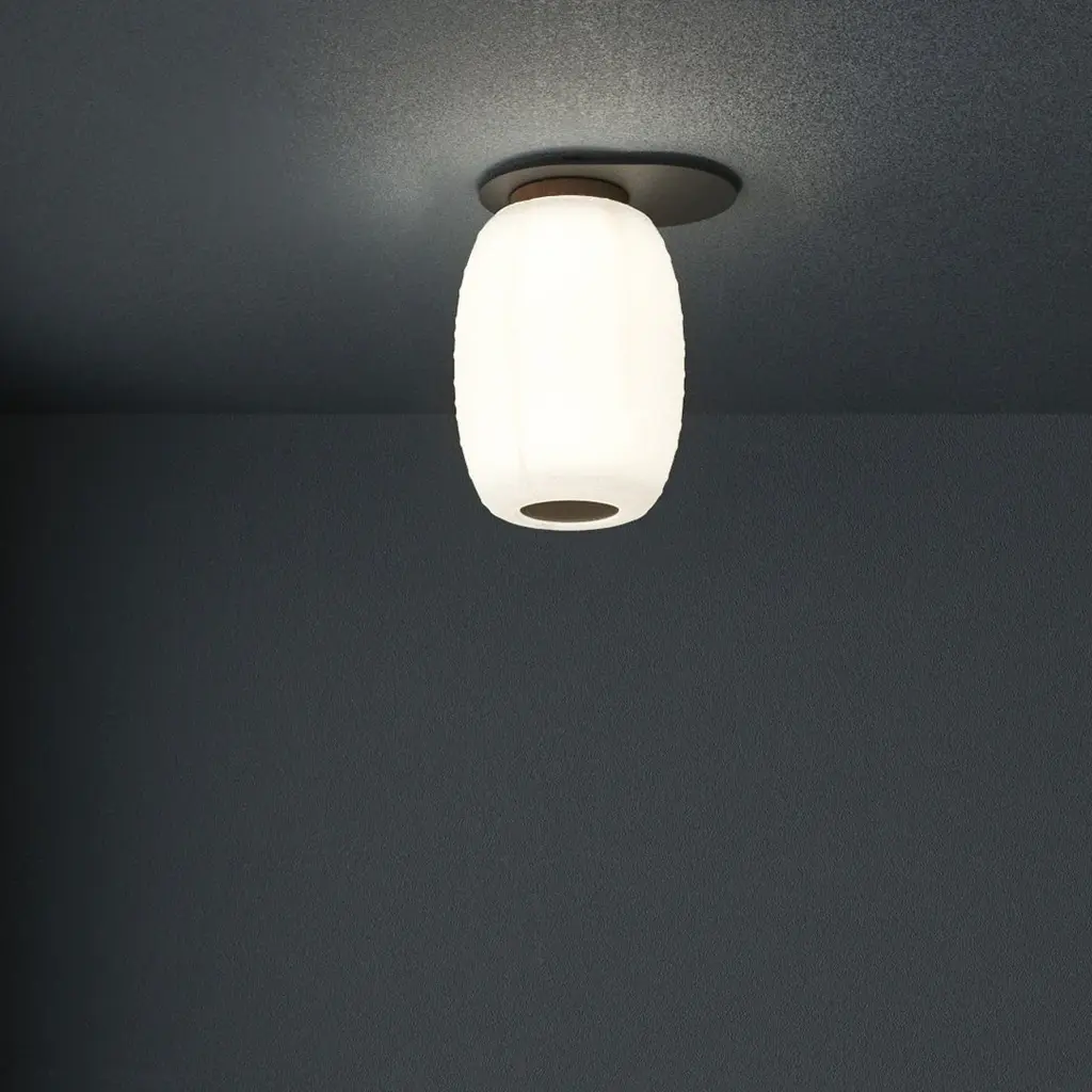 The Misko Ceiling Lamp from B.lux pays tribute to traditional Japanese lantern craftsmanship through its sculptural blown glass design. Replacing washi paper with opaque glass and featuring a raised linear pattern reminiscent of bamboo, this lamp blends simplicity with natural elegance. Its low-profile metal canopy contrasts beautifully with the glass, while the warm golden shade casts a cozy, inviting glow, making it a sophisticated centerpiece for any refined space. Highlights