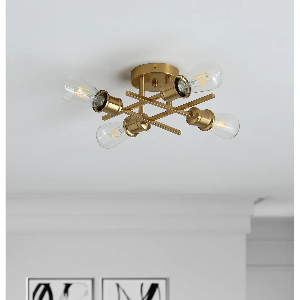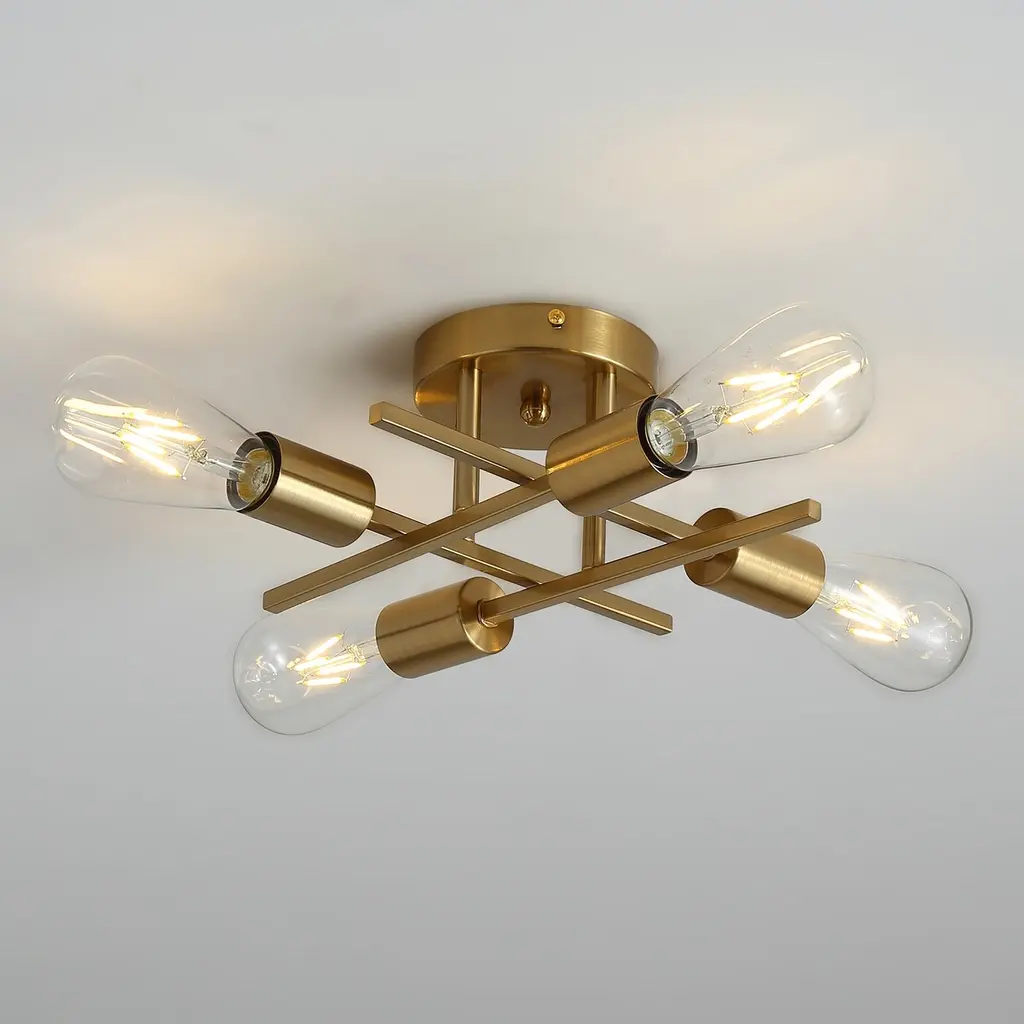 Modern Sputnik Design Semi Flush Mount Gold 4-Light Ceiling Lamp - Gold