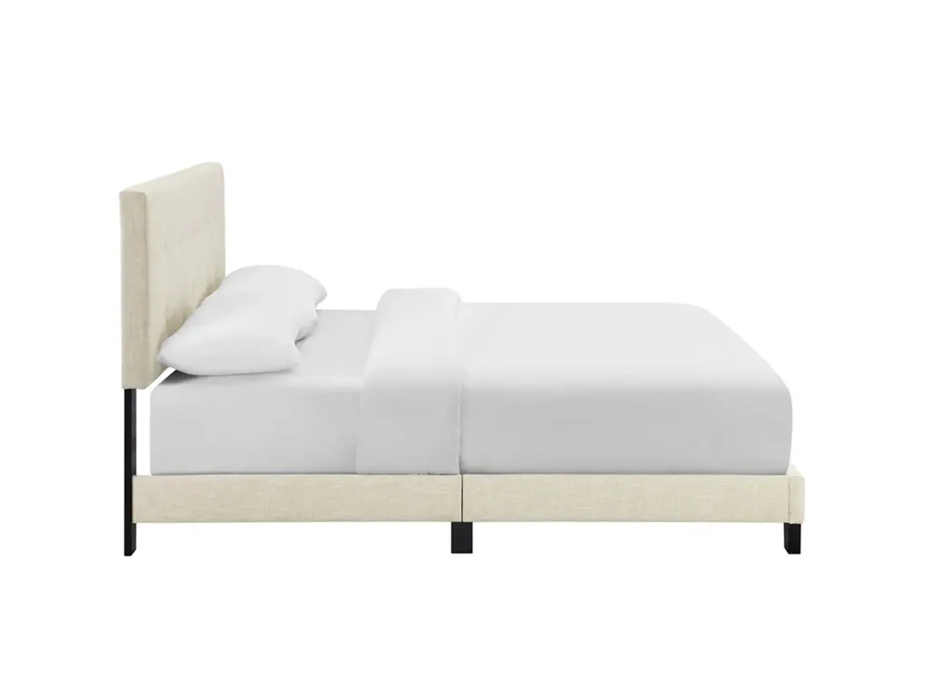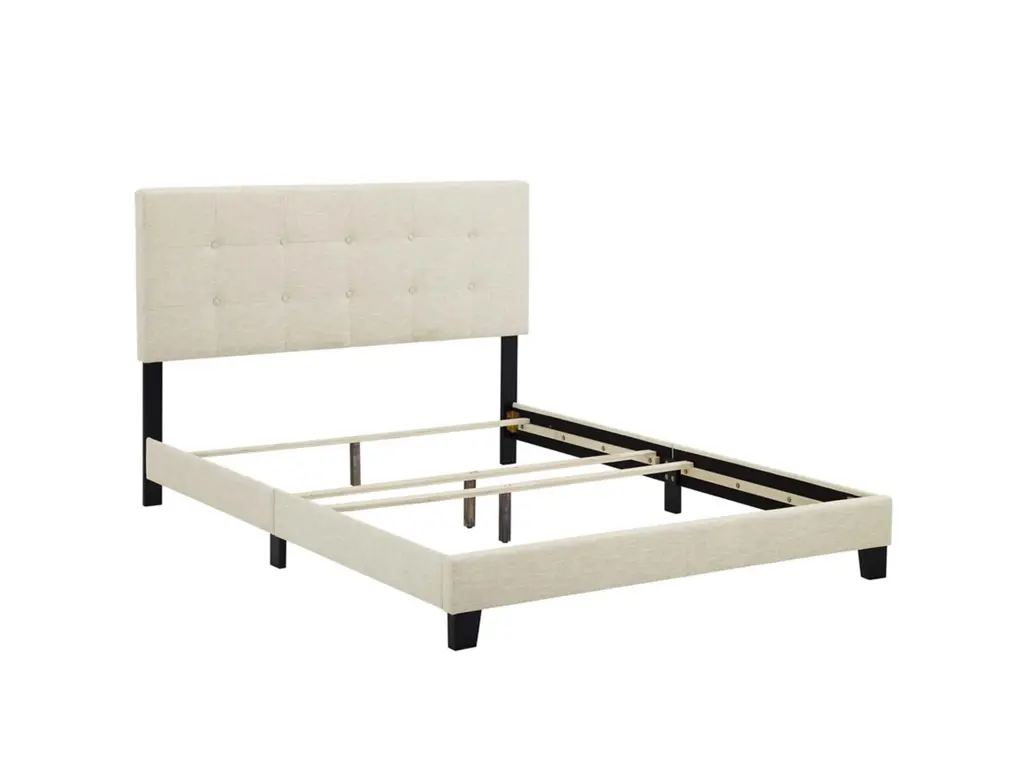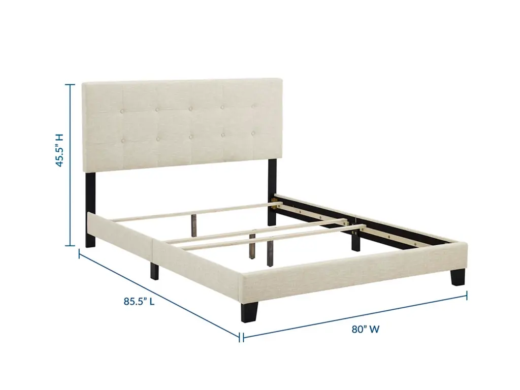 Inspire sweet dreams with a cozy king bed. Designed with chic elegance and contemporary style, Amira comes with a soft polyester fabric upholstered base, timeless button-tufted headboard, and wood bed frame and legs, with non-marking foot caps. Complete with a reinforced center beam for maximum stability, Amira accommodates memory foam, spring, latex, and hybrid mattresses. A sleek and sophisticated centerpiece to the master bedroom or guest suite, this modern bed effortlessly transforms your bedroom decor with its luxe look. Box spring required (not included). Bed Weight Capacity: 800 lbs.