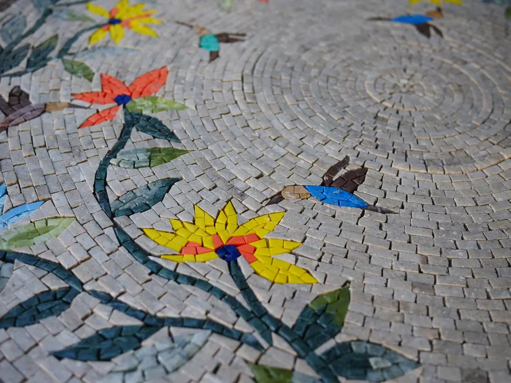 Introducing our stunning Mosaic Art Medallion - Birds and Trees, a masterpiece that brings the beauty of nature into your home. This exquisite medallion is perfect for anyone seeking to enhance their living space with a touch of elegance and sophistication. Crafted from hand-cut natural stones, each piece is selected for its unique color variations, ensuring that no two medallions are exactly alike. The intricate design features beautifully detailed depictions of birds and trees, celebrating the harmony of nature in a stunning visual display. Whether you choose to place it as a captivating wall centerpiece, a striking floor inlay, or a statement piece in your garden, this medallion is sure to impress all who encounter it.Imagine the compliments you'll receive from friends and family as they admire the craftsmanship and artistry of this stunning piece. Its durable construction means it's not only a feast for the eyes but also built to withstand the test of time, making it a lasting addition to your home decor.Transform your space into an artistic sanctuary with the Mosaic Art Medallion - Birds and Trees. Celebrate the natural world and add a chic focal point to your interior or exterior design. Elevate your home aesthetic and create a welcoming atmosphere that resonates with style and charm. Order yours today and let the beauty of nature adorn your living spaces.