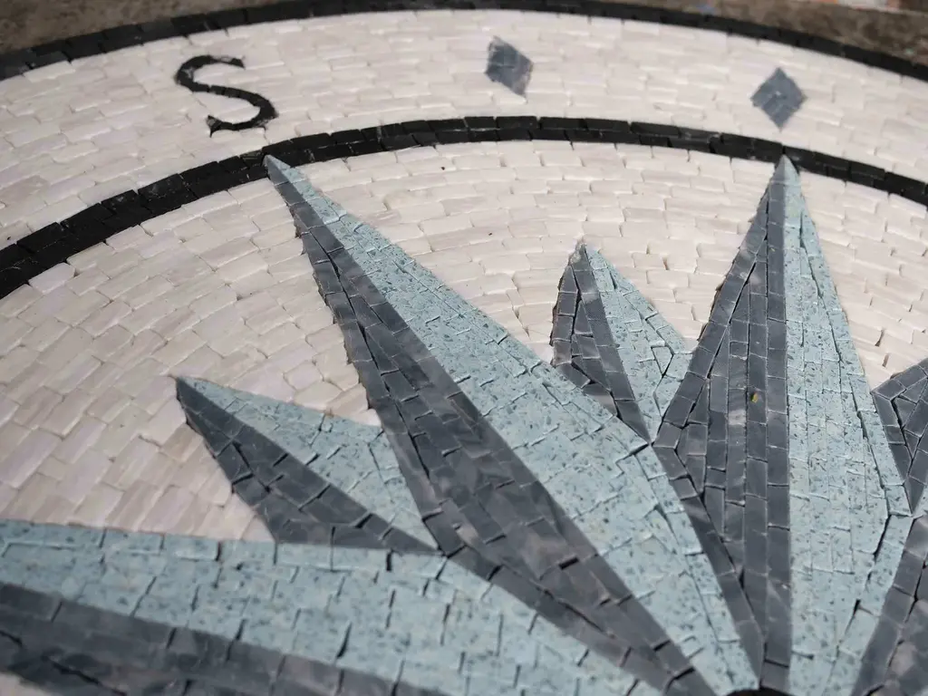 Mosaic Medallion - Blue Shades Compass | Luxury Handcrafted Stone Art - 90cm X 90cm (36" X 36")