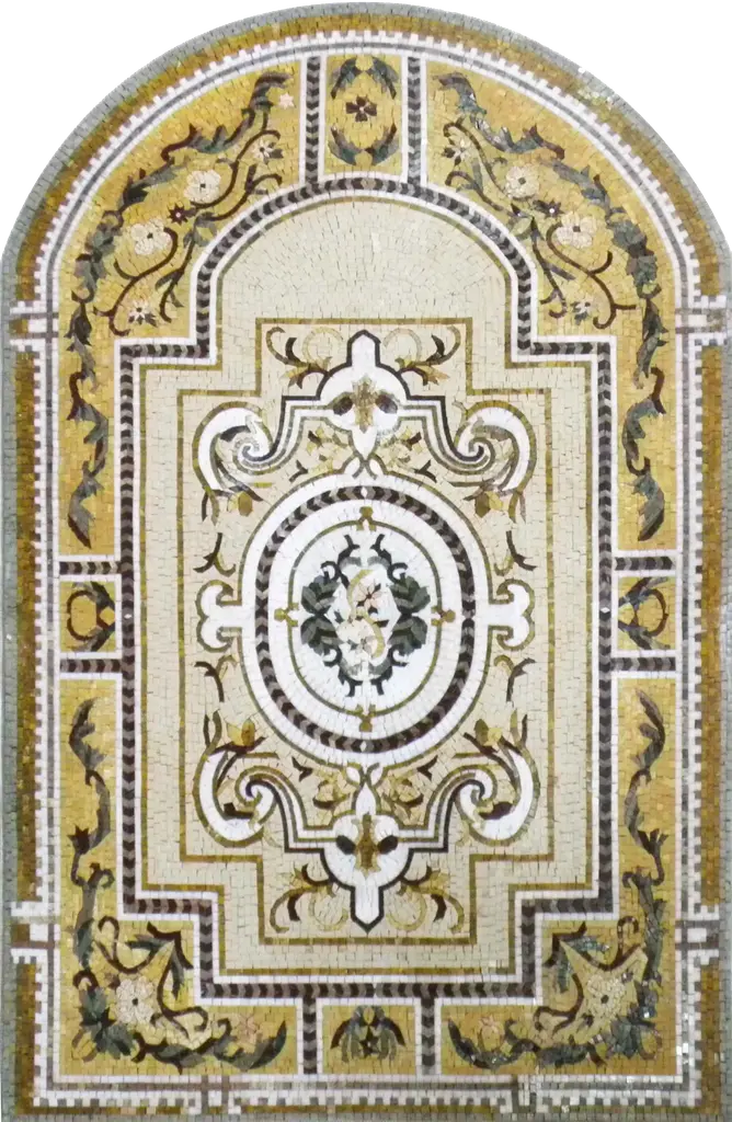 Discover the allure of the "Mosaic Tile Patterns - Majestic Adela," where elegance meets artistry in every detail. This stunning arched mural mosaic is a celebration of ornate beauty, meticulously crafted to bring a touch of sophistication to any space. The intricate flower-patterned design, coupled with decorative borders and a unique frame, transforms your surroundings into a visual masterpiece.The "Mosaic Tile Patterns - Majestic Adela" is not just a decorative piece; it's an embodiment of luxury that enhances your home or office. Whether you're looking to create a striking wall accent or a captivating door mural, this extraordinary mosaic serves as the perfect centerpiece. Its vibrant yellow and charcoal palette adds depth and richness, making it suitable for various design aesthetics—from contemporary to classic.In addition to its wall and door applications, this magnificent mosaic can also compose breathtaking marble floors, effortlessly combining functionality with exceptional design. The versatility of the "Mosaic Tile Patterns - Majestic Adela" allows it to adapt beautifully to indoor and outdoor settings, providing endless possibilities for enhancing your décor.Elevate your living space with the "Mosaic Tile Patterns - Majestic Adela," where each tile tells a story of elegance and grandeur. Ideal for those who appreciate fine craftsmanship, this mosaic invites you to indulge in its luxurious charm and breathe new life into your environment. Don't miss the opportunity to own a piece of art that transcends traditional design—transform your space today with the enchanting "Mosaic Tile Patterns - Majestic Adela."