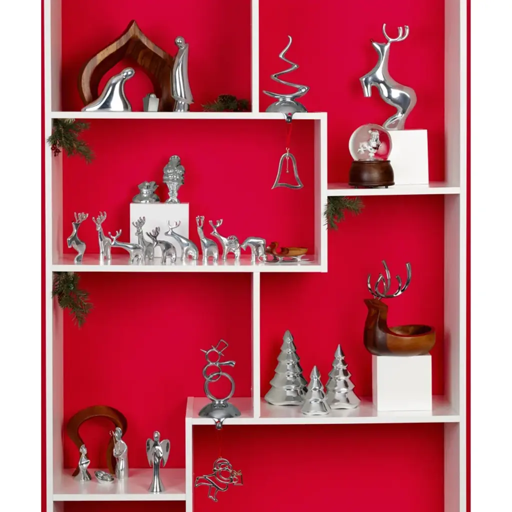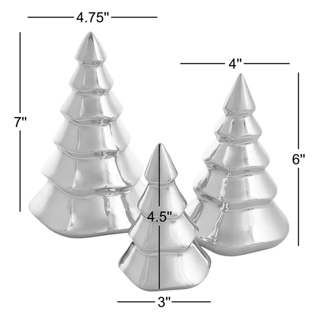 A classic Christmas. These mini tabletop trees showcase carefully sculpted boughs that give the effect of freshly fallen snow. Each tree is crafted from a metal alloy with a silver-like luster; the largest stands at about seven inches tall. They arrive as a set of three – group them into a festive centerpiece or scatter them across the mantel for some elevated holiday cheer.