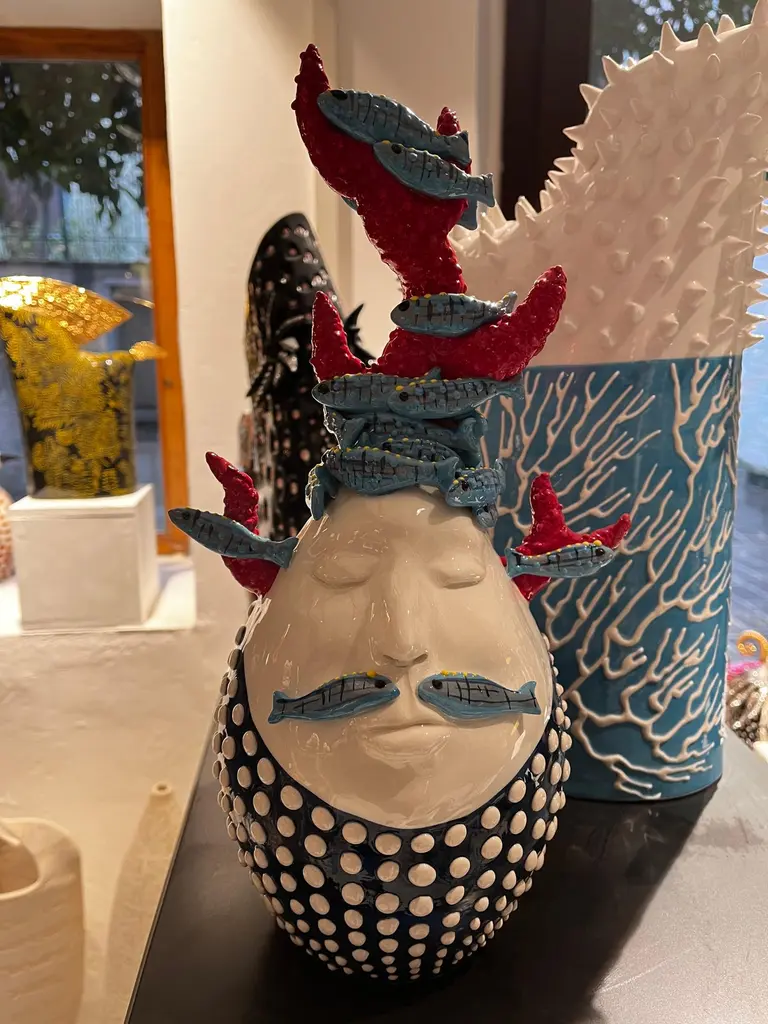 Naturalistic Ceramic Centerpiece Marine Handmade In Italy Without Mold, 2023