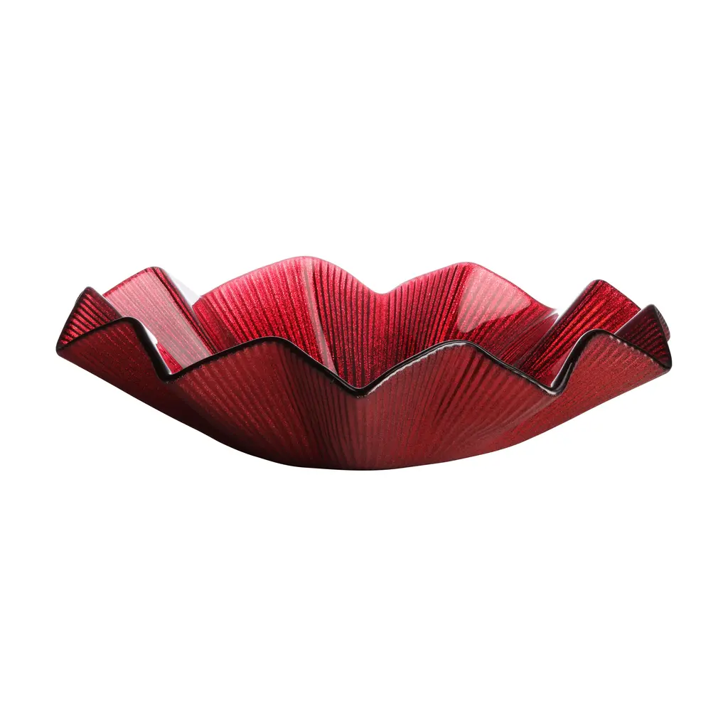 The Noel Centerpiece from IVV is crafted from colored pressed glass featuring a simple yet distinctive optic design with canneté strokes radiating from the center. Enhanced with glitter accents, this elegant piece adds a festive sparkle, making it a perfect addition to your holiday party table. Highlights